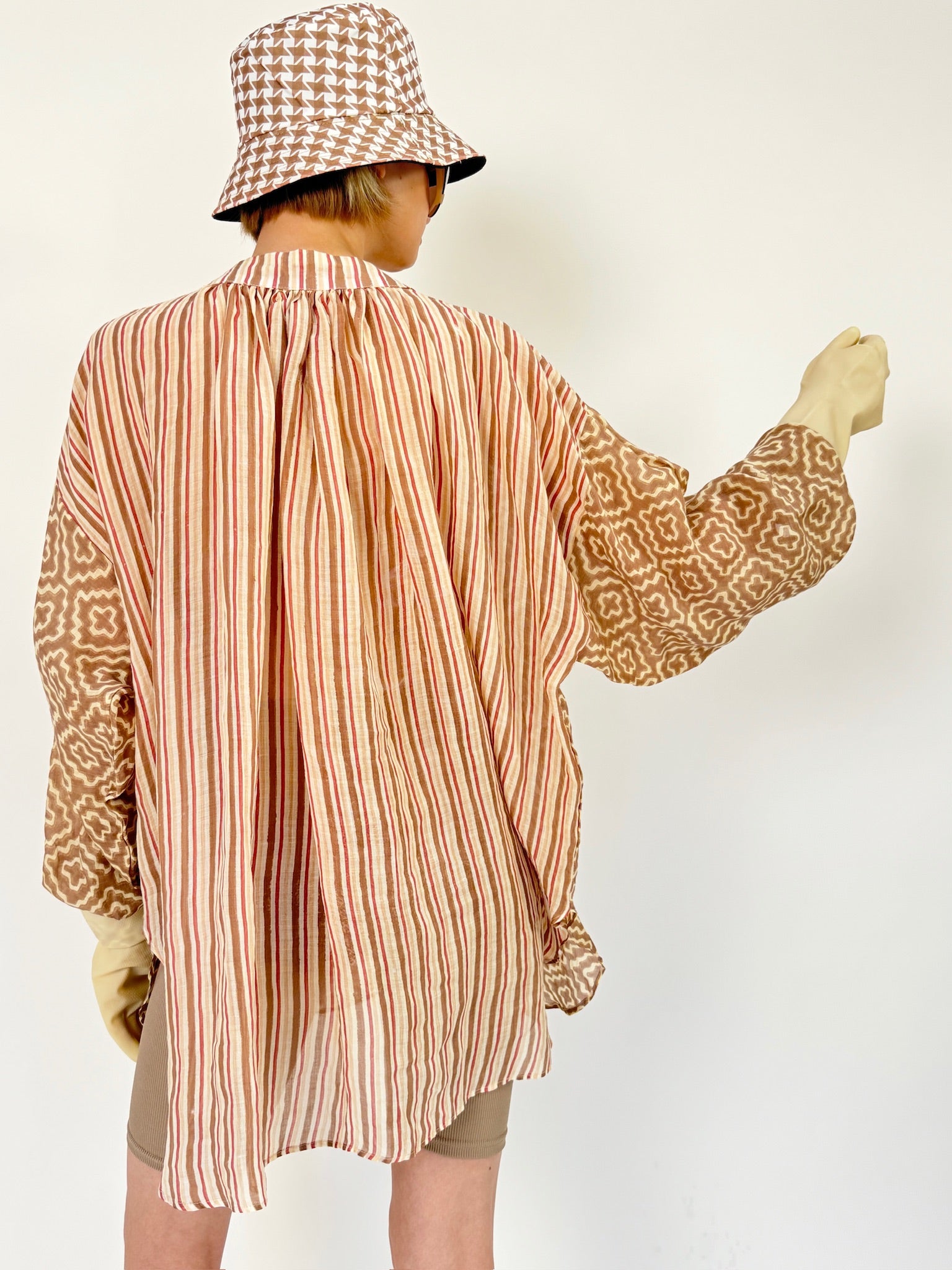 Each piece is meticulously handmade using natural dyes and original techniques. Embrace the uniqueness of your style as no two shirts are alike, ensuring that you don a truly one-of-a-kind garment. Revel in the delicate craftsmanship and the bespoke beauty of your wardrobe with our Frill Shirt.
