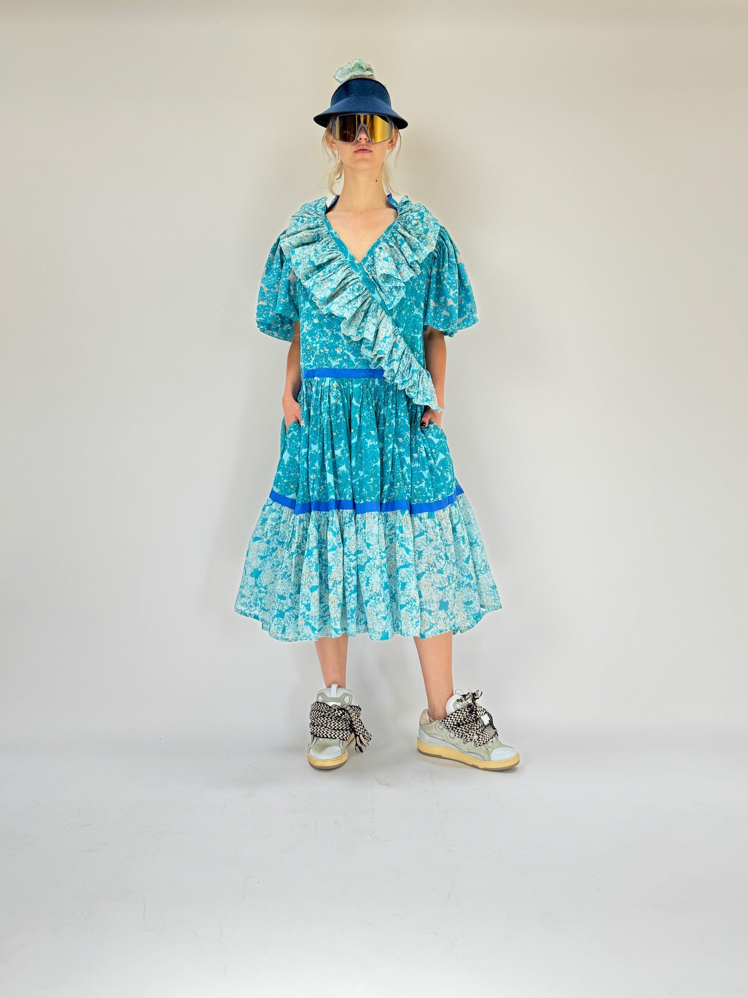 What sets this dress apart is its unique touch – each piece is meticulously handmade and hand-printed using original techniques. The result is a one-of-a-kind garment, as no two dresses are alike. Embrace your individuality and make a statement with the Multi Print Mamma Mia dress, where fashion meets artistry.