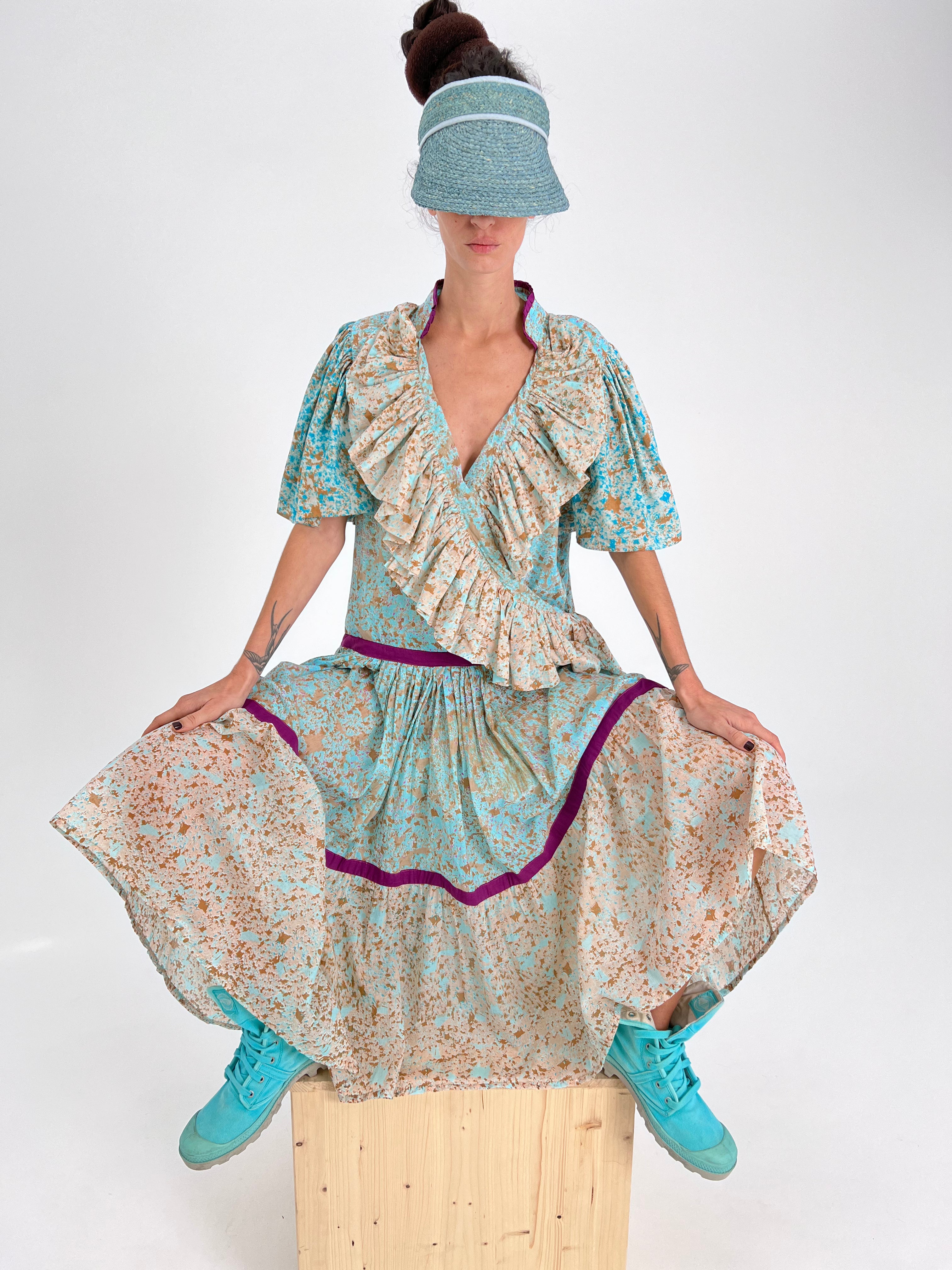 What sets this dress apart is its unique touch – each piece is meticulously handmade and hand-printed using original techniques. The result is a one-of-a-kind garment, as no two dresses are alike. Embrace your individuality and make a statement with the Multi Print Mamma Mia dress, where fashion meets artistry.