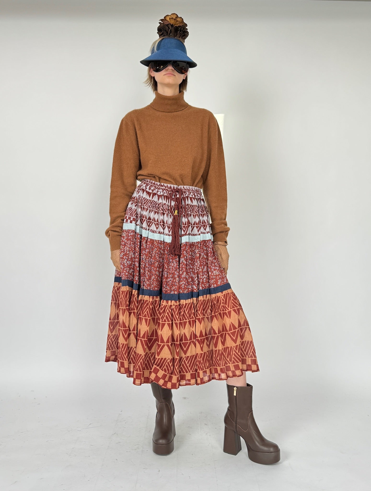 Crafted from 100% Cotton Voile, our Multi Print Midcalf skirt promises comfort without compromising on style. The Midcalf skirt features a charming cord tassel belt and convenient side pockets.