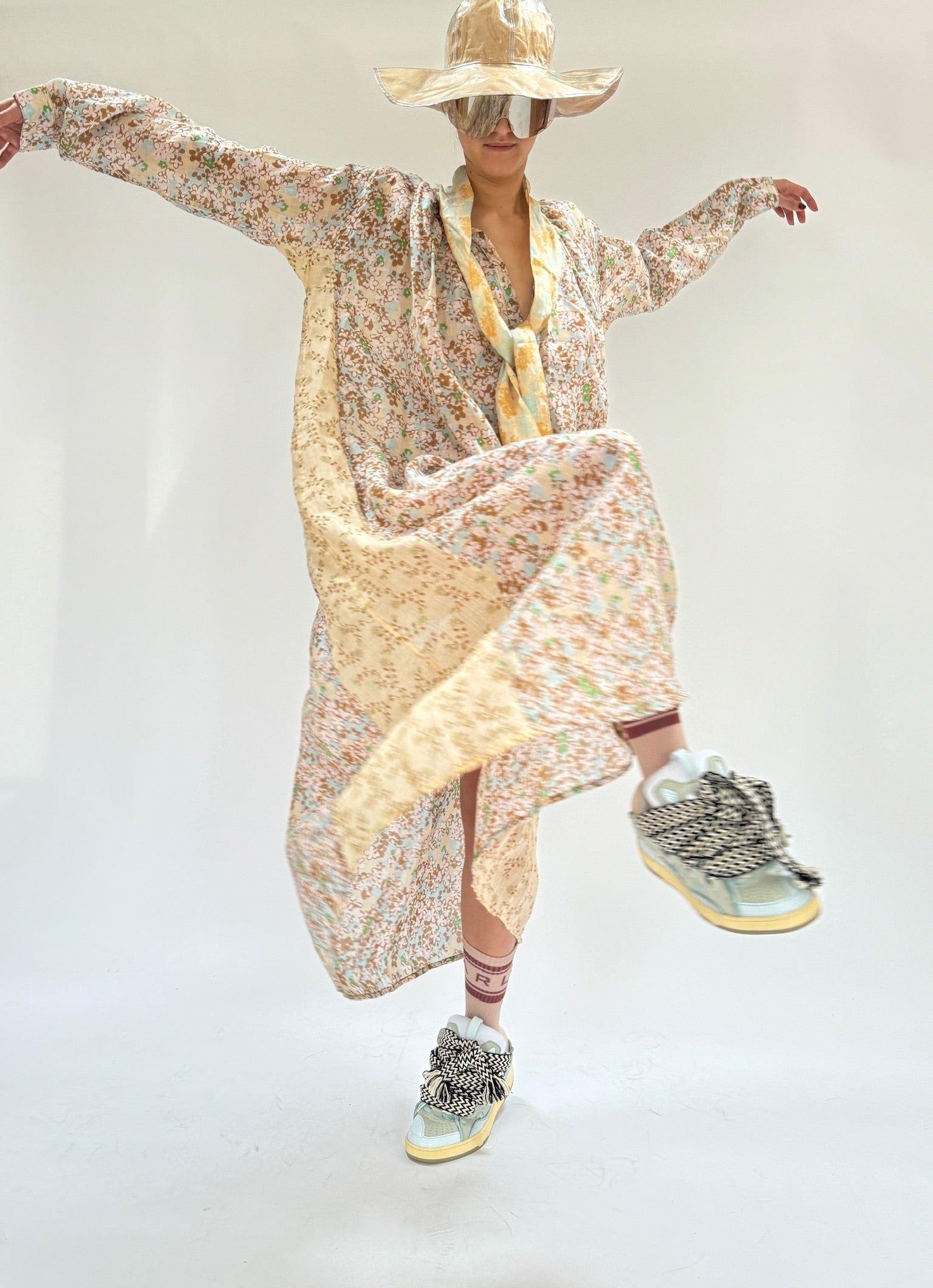 Each Yvonne S piece begins as a hand-drawn design, then translated onto natural fabrics with eco-friendly printing. The result is wearable art that transcends seasons — comfortable volumes in vibrant prints that embody effortless sophistication.