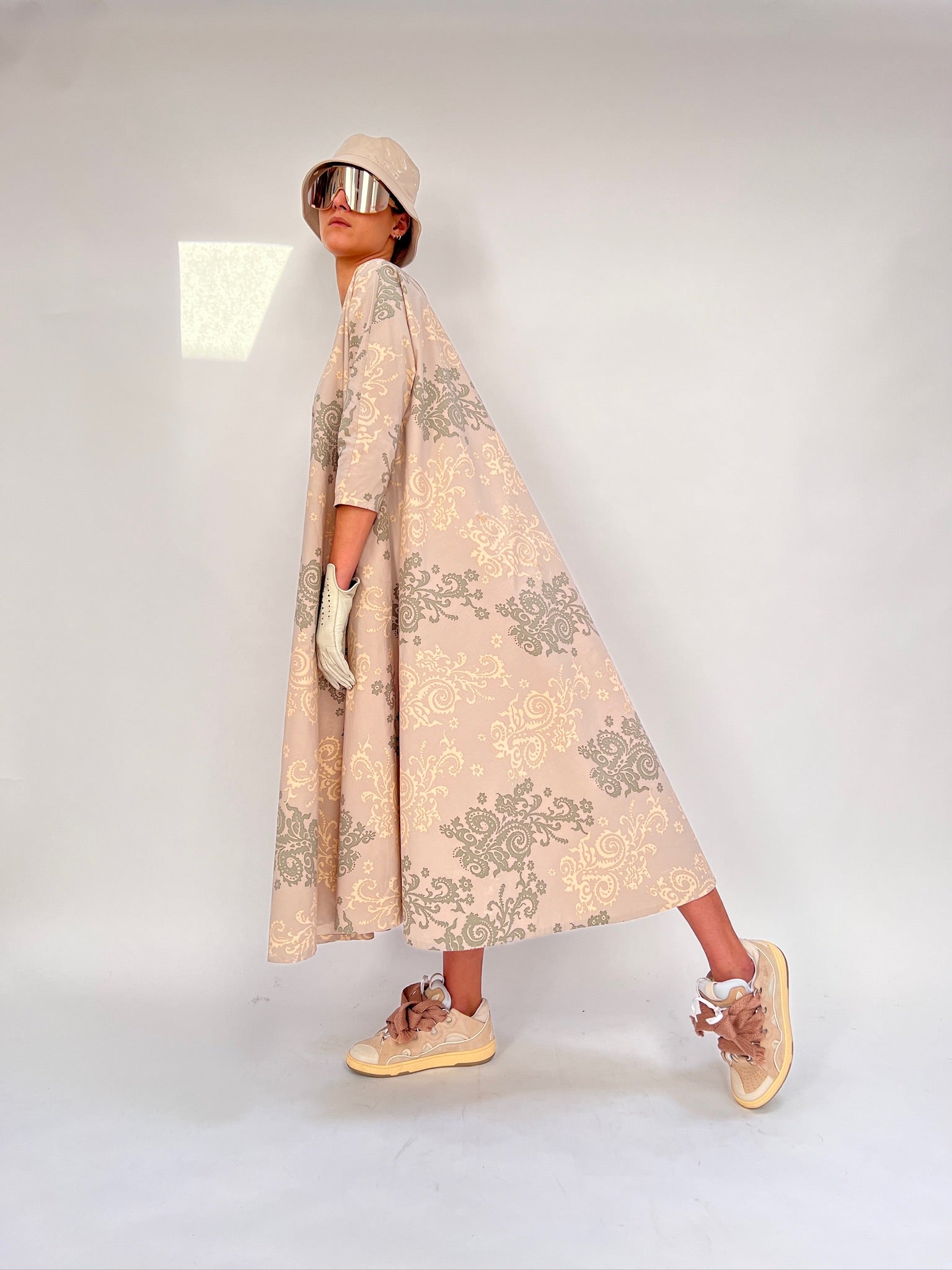 Each dress is made with unique prints created through hand-applied screen-printing techniques using natural dyes. No two dresses are alike, ensuring that each piece is as individual as the wearer Elevate your style with our Floor Frock – a blend of comfort, uniqueness, and contemporary fashion.
