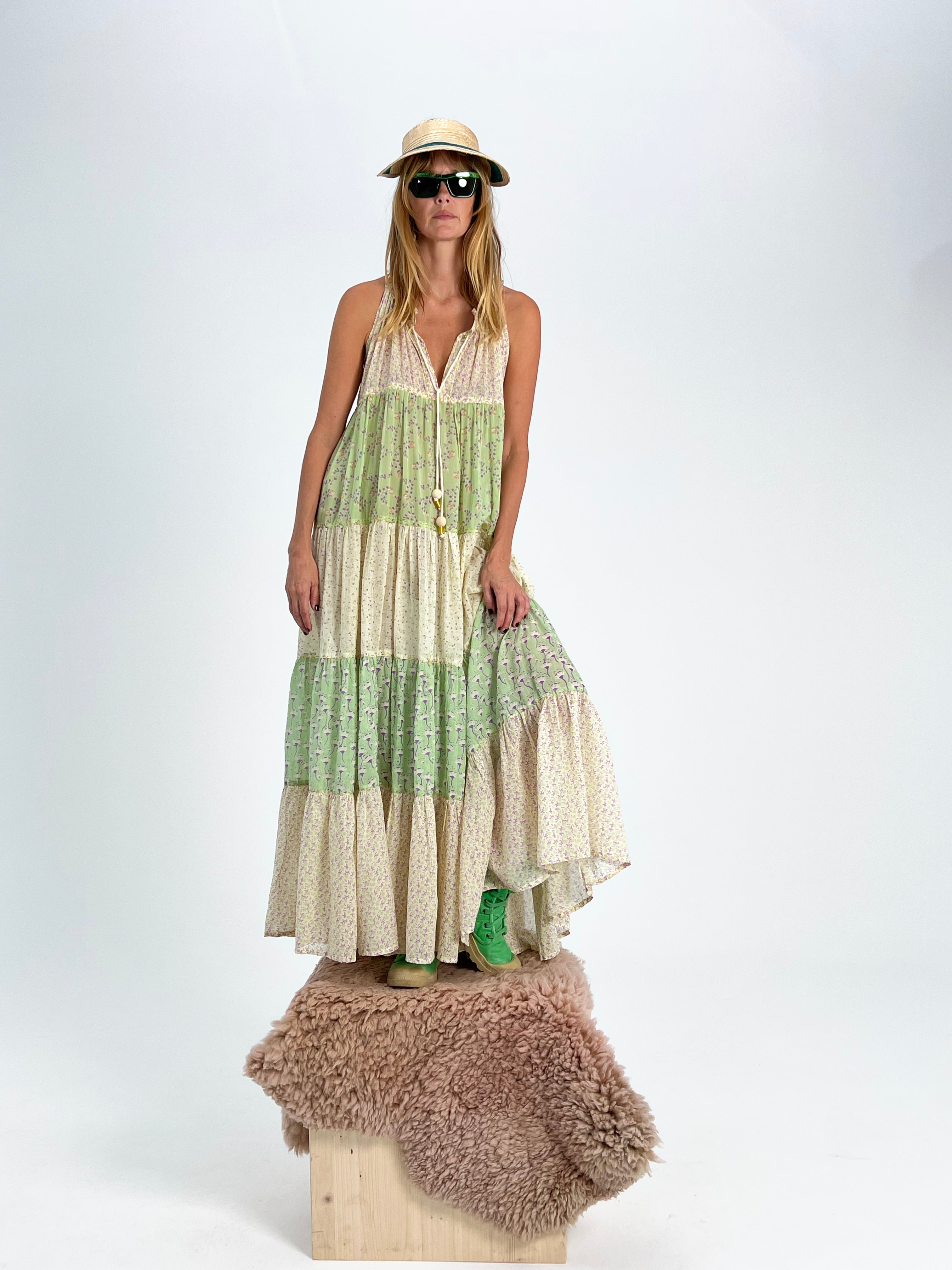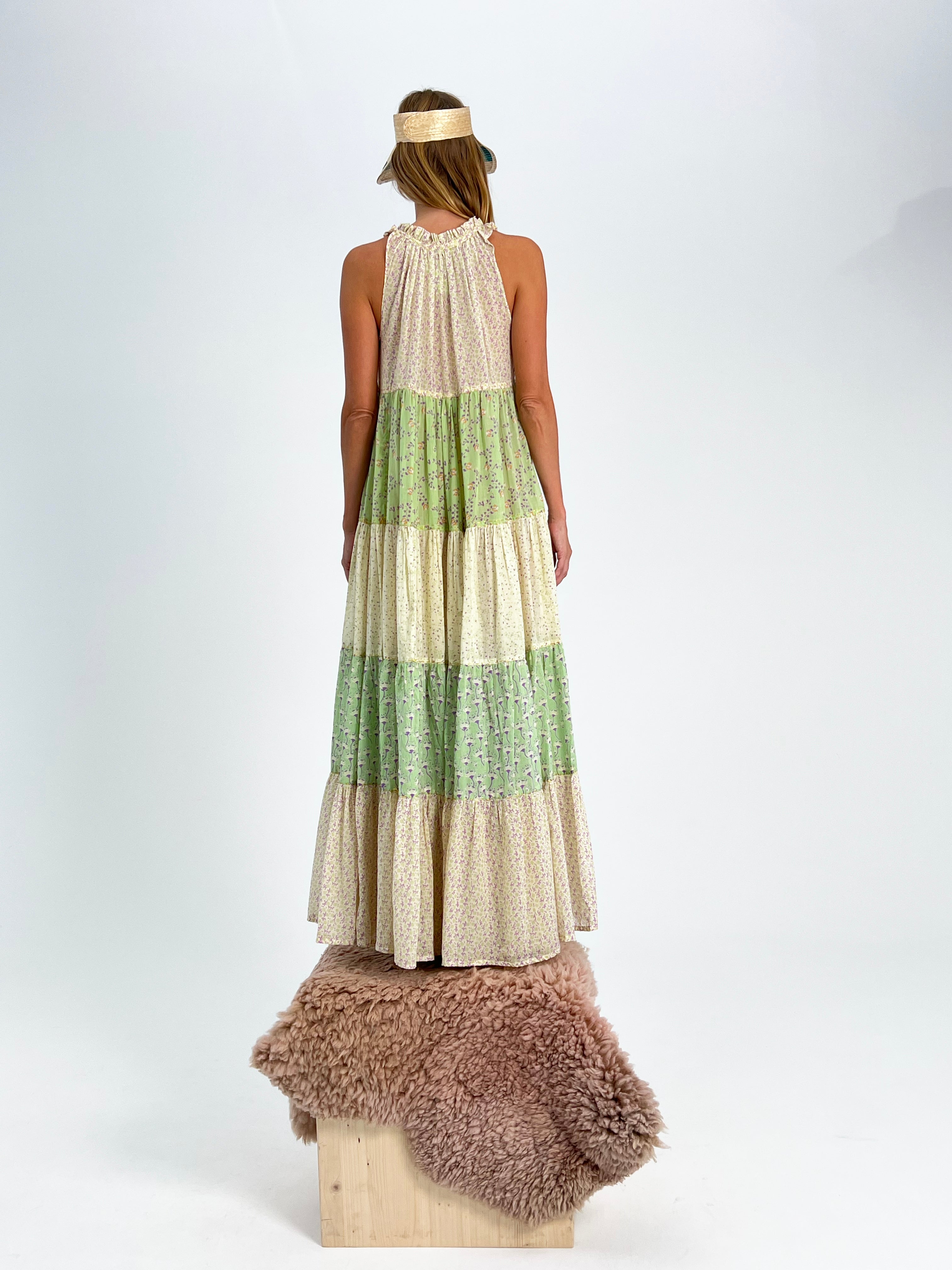 Our Maxi Hippydress Sleeveless is a forever dress. Hand-made and hand-printed in 100% cotton voile gives it a light and airy feel, perfect for embracing your free-spirited vibe. With an alluring array of Cream, Pistaccio, and Violette showcased in extraordinary mix of Tiny Daisy, Viola, Petite Fleur, and Charleston prints, this dress is not just a fashion statement but a celebration of timeless style and creativity.