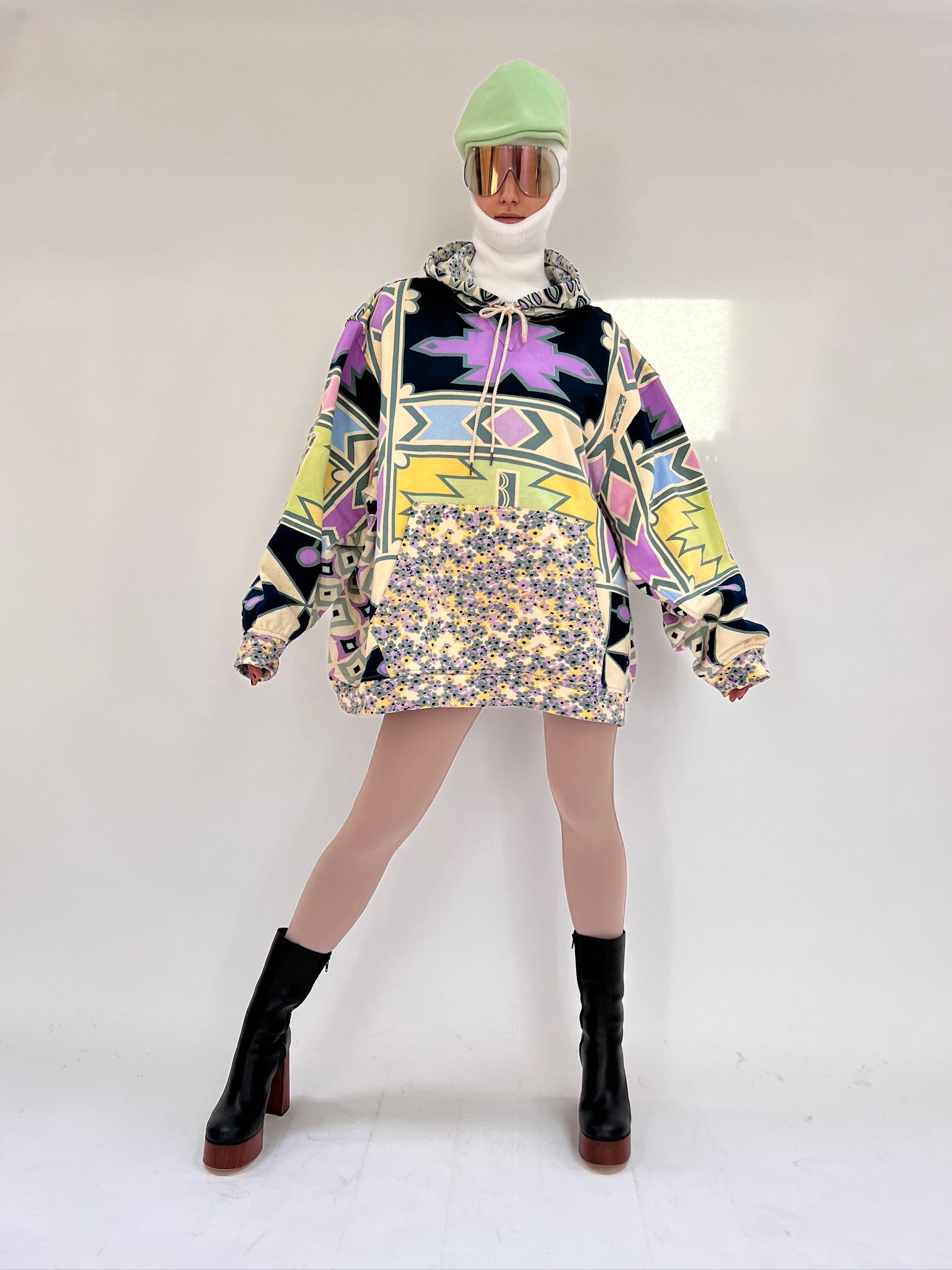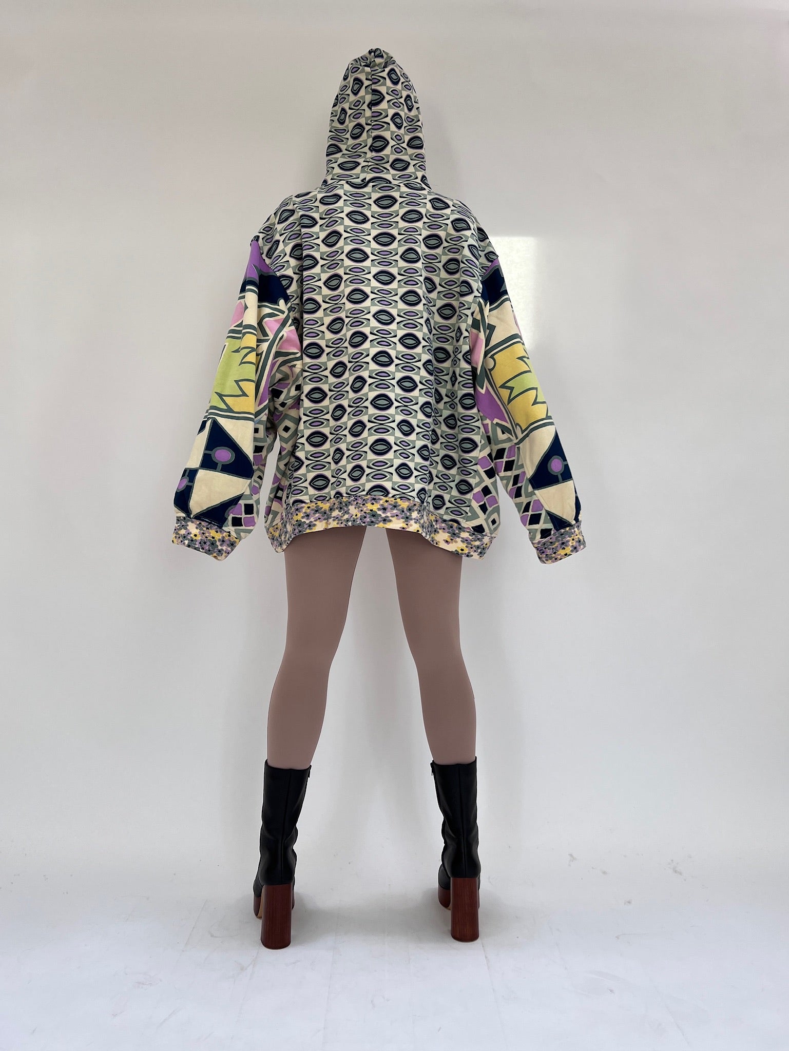 Crafted from Bamboo Cotton French Terry 40, our Multi Print Oversize Maxi Hood Sweat promises a luxurious feel against your skin, ensuring both breathability and durability - a perfect blend of comfort, style, and uniqueness.