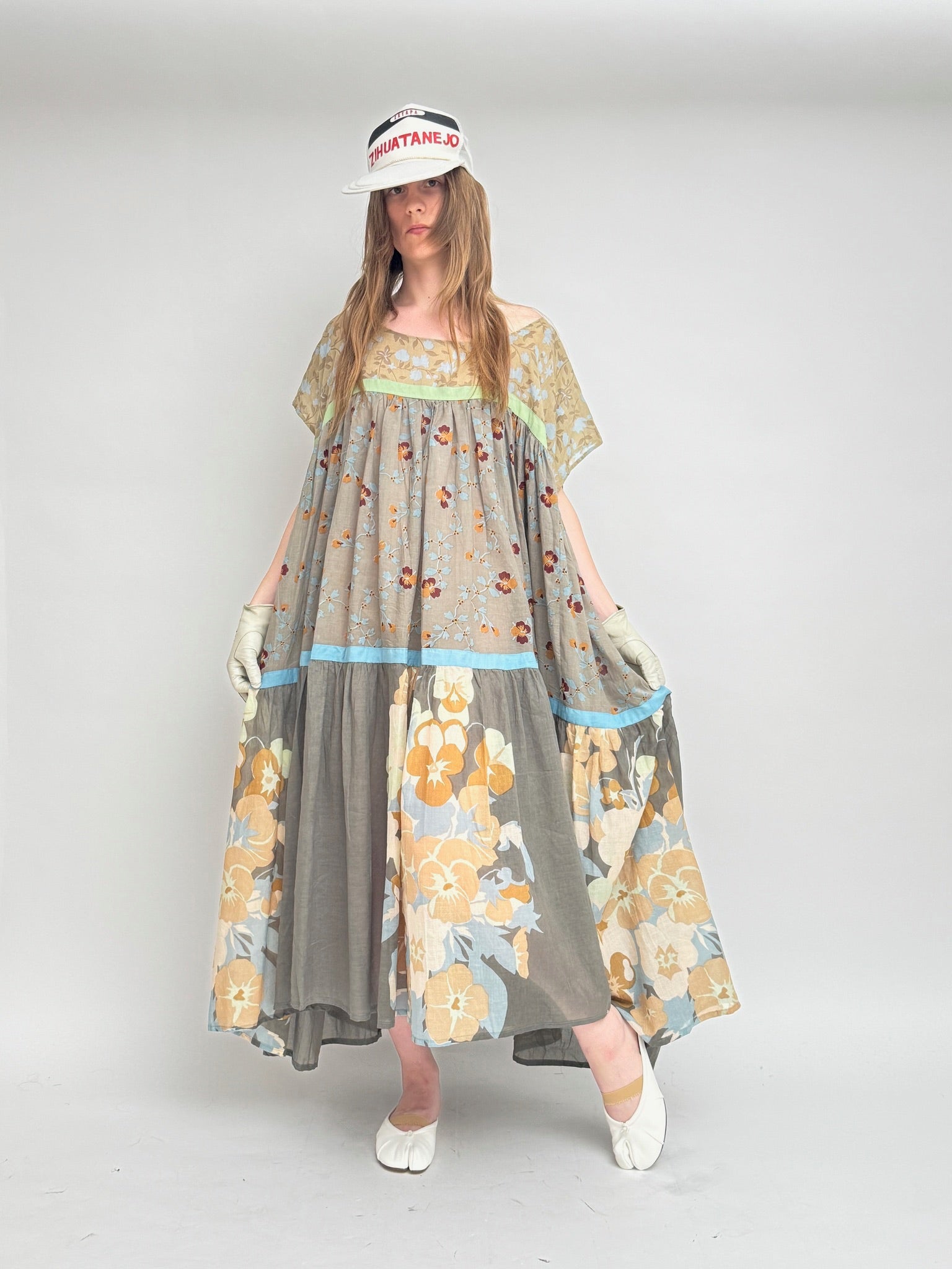 With an off-the-shoulder silhouette adorned with rich Rost ribbons, this dress exudes charm. This “air-conditioning dress” allows you to stay effortlessly cool as the lightweight material ensures a comfortable and breathable wear, perfect for those warm, sunny days.