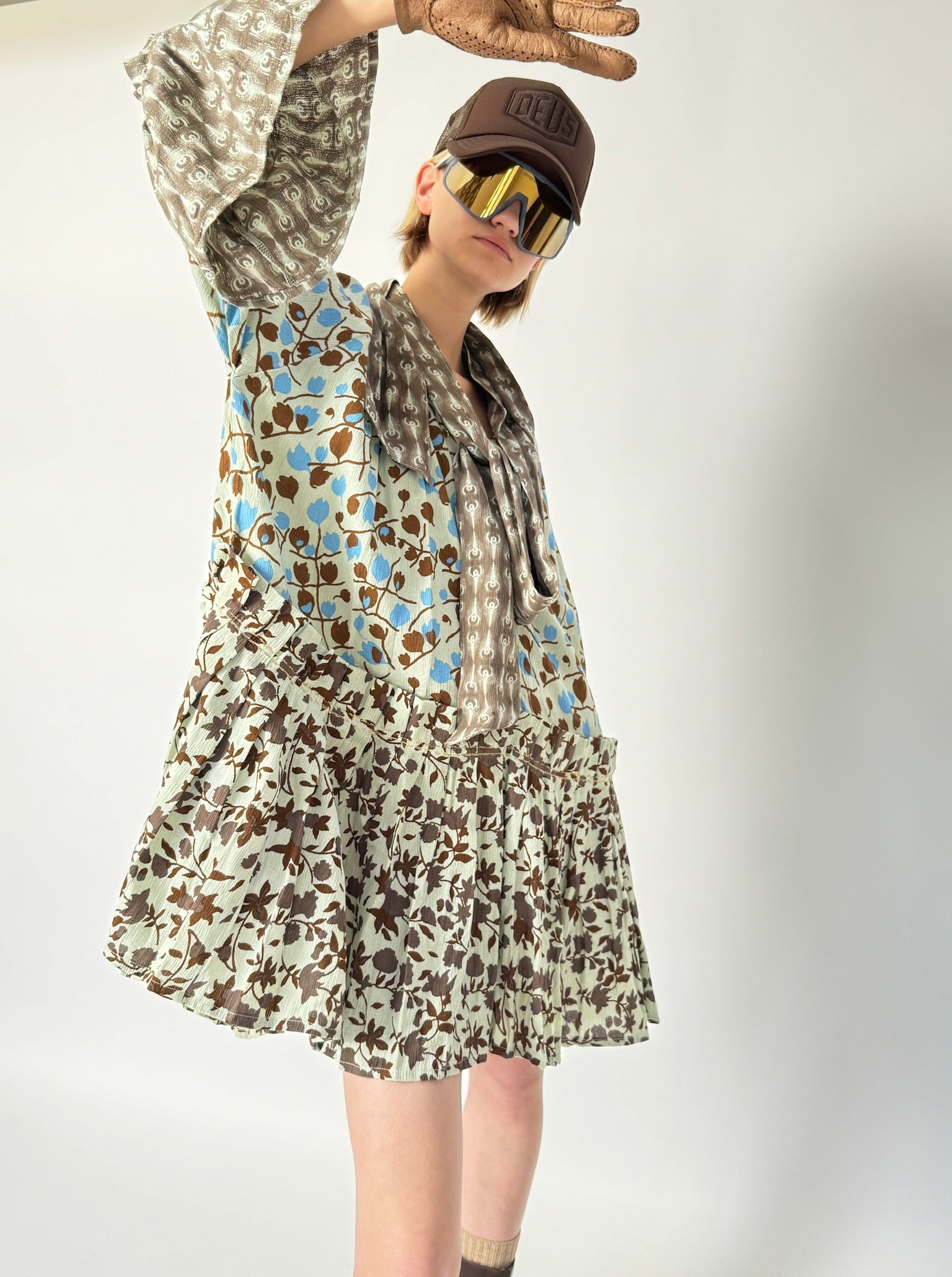 Each dress is made with unique prints created through hand-applied screen-printing techniques using natural dyes. No two dresses are alike, ensuring that each piece is as individual as the wearer. Embrace your uniqueness and express your style with the Angelica Mini dress — where fashion meets artistry in every stitch. If you like the Angelica Mini, try the Angelica Dress, which is a similar cut with a longer hem.