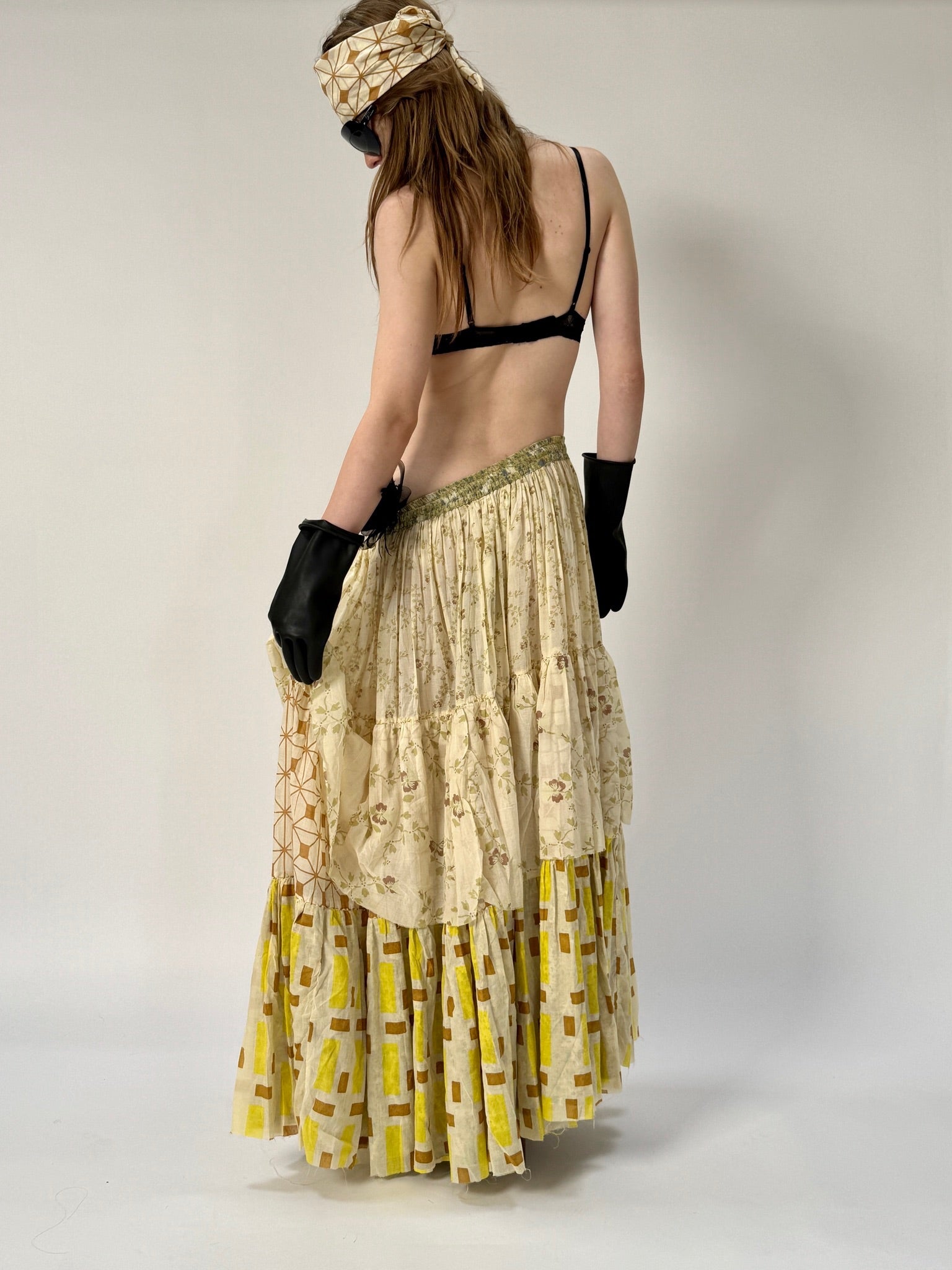 Crafted from 100% Cotton Voile, our Multi Print Double Maxi Skirt, with its luxurious volume, is a vibrant and versatile addition to your wardrobe. The prints add a touch of bohemian flair to your style.