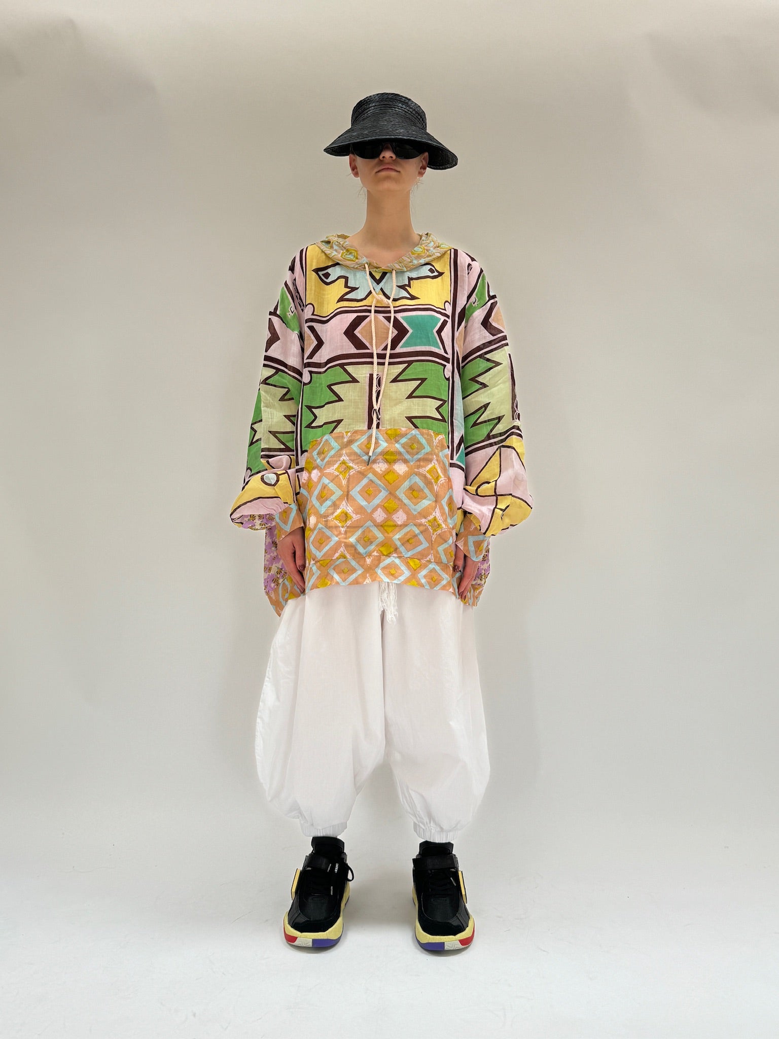 Each piece is handmade and hand-printed using original techniques, ensuring that no two hoodies are alike. Embrace the individuality of your garment, as each piece is a one-of-a-kind creation. Elevate your wardrobe with this Maxi Hood Sweat – where comfort, style, and uniqueness converge in a fashion-forward masterpiece.