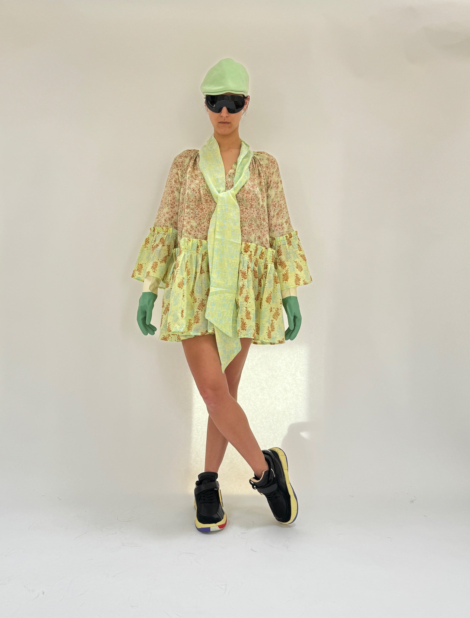 The Angelica Mini dress features a stylish bowtie, cuffs, and bottom volants, creating a silhouette that effortlessly flatters.