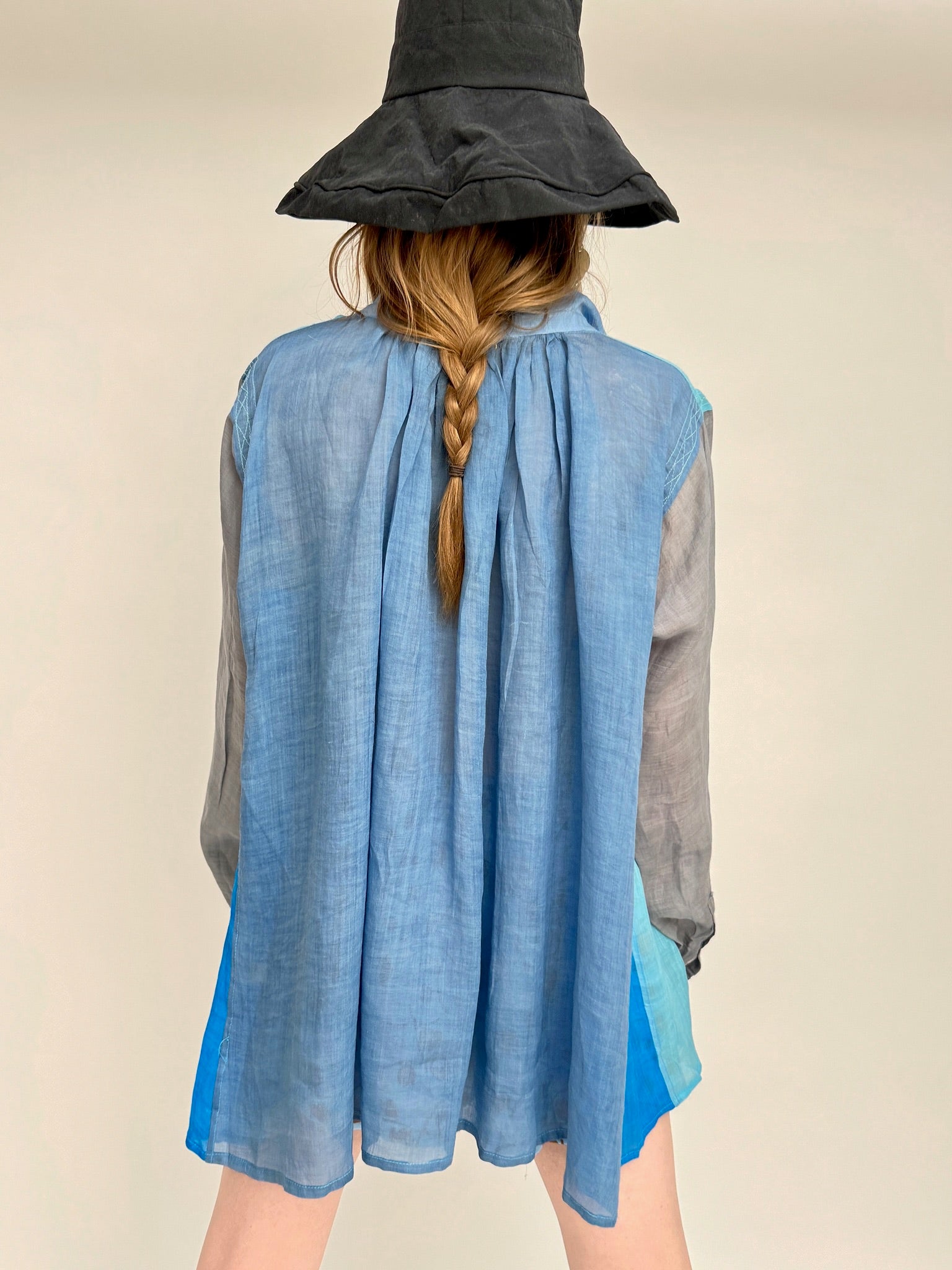 The unique handmade and hand-printed techniques employed in the creation of each blouse ensure that no two pieces are alike, making yours truly one-of-a-kind. Elevate your style with the Bow Blouse, a versatile and distinctive addition to your collection. Embrace the artistry of handmade fashion and revel in the exclusivity of a garment that reflects your individuality.