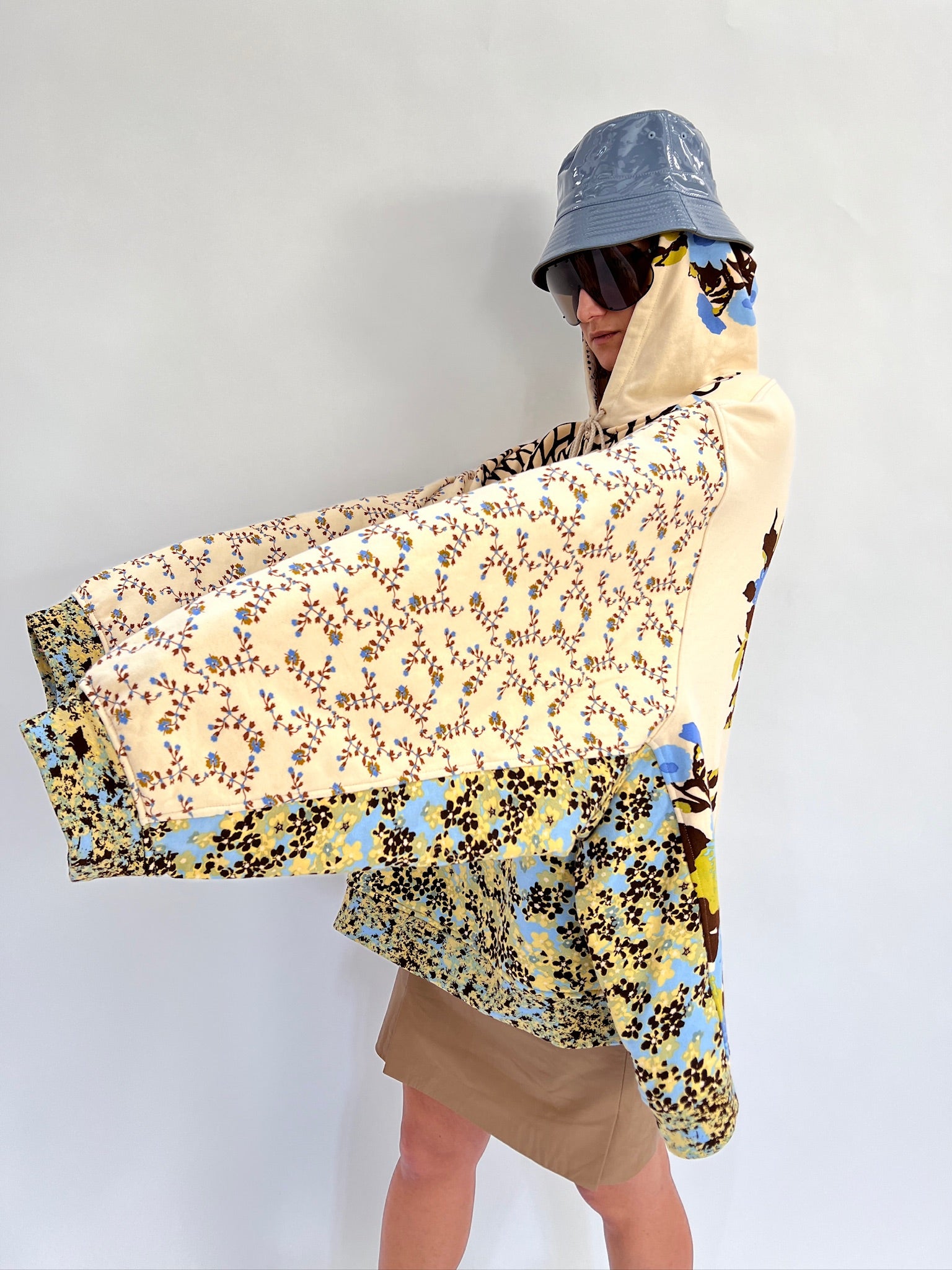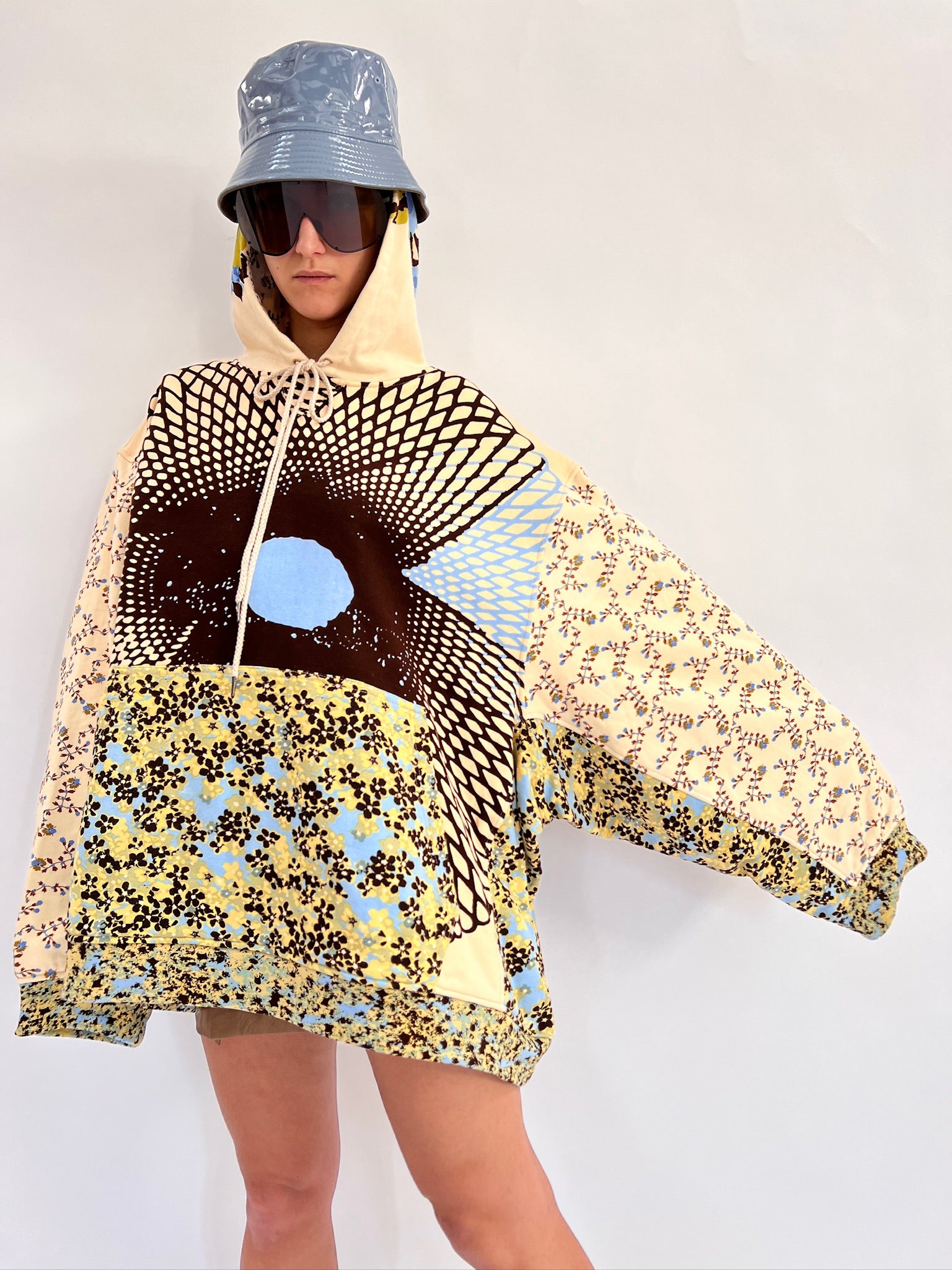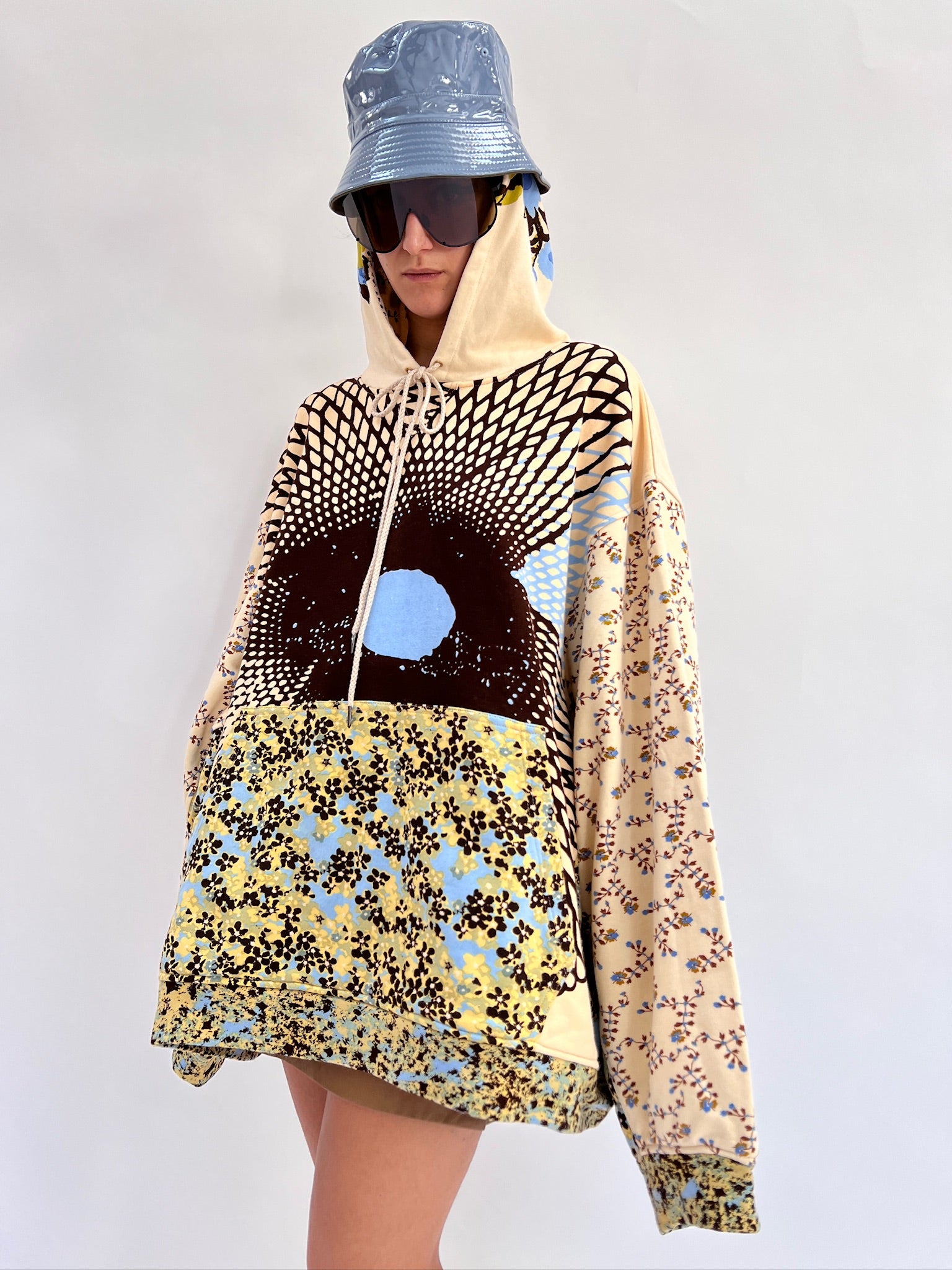 The handmade and hand-printed process employs original techniques, making each piece a wearable work of art. Each design is carefully crafted, ensuring that no two pieces are alike. Elevate your wardrobe with a Multi Print Oversize Maxi Hood Sweat – where comfort meets creativity, and every piece tells a one-of-a-kind story.
