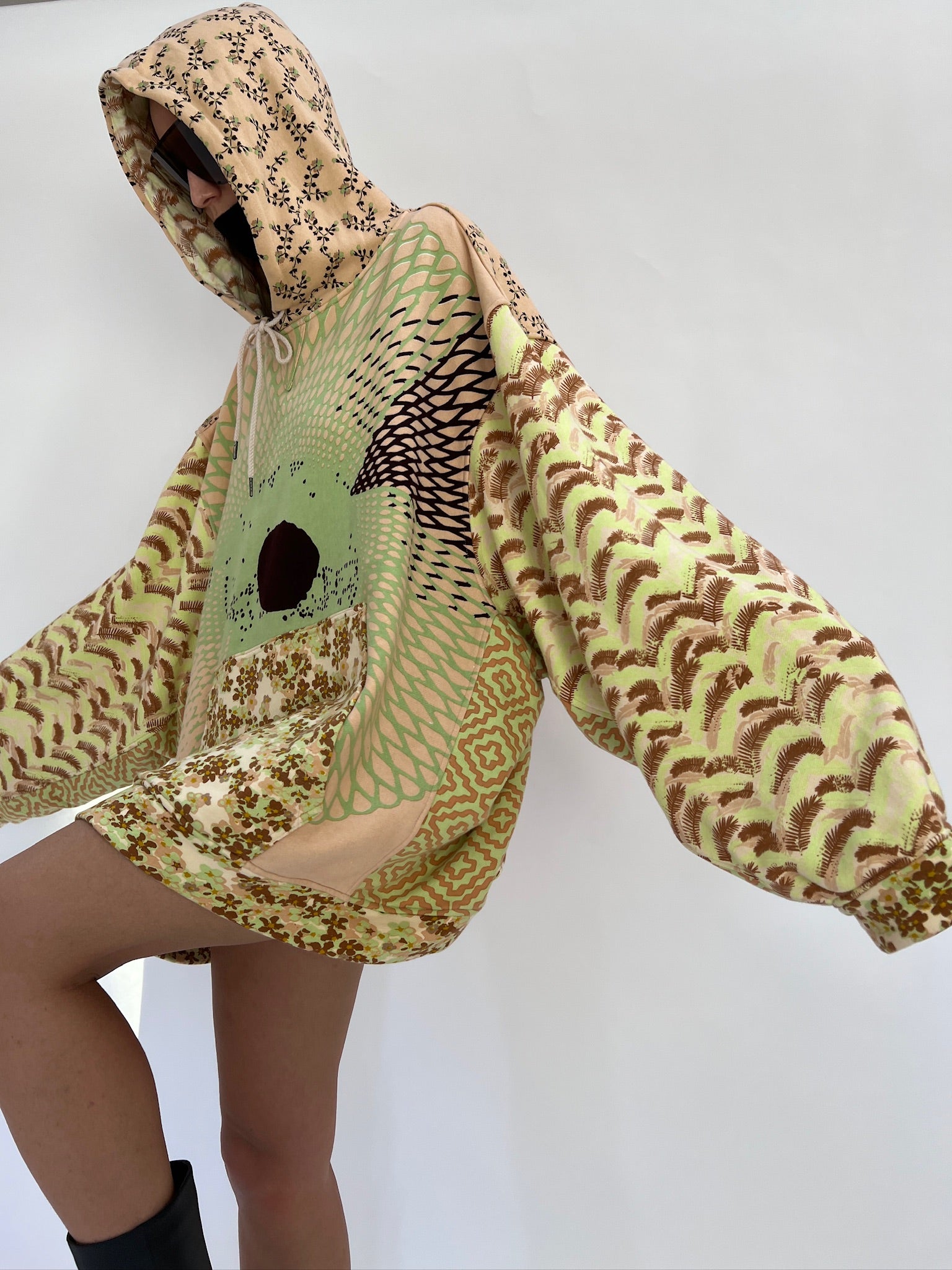 Crafted from Bamboo Cotton French Terry 40, our Multi Print Oversize Maxi Hood Sweat promises a luxurious feel against your skin, ensuring both breathability and durability - a perfect blend of comfort, style, and uniqueness.