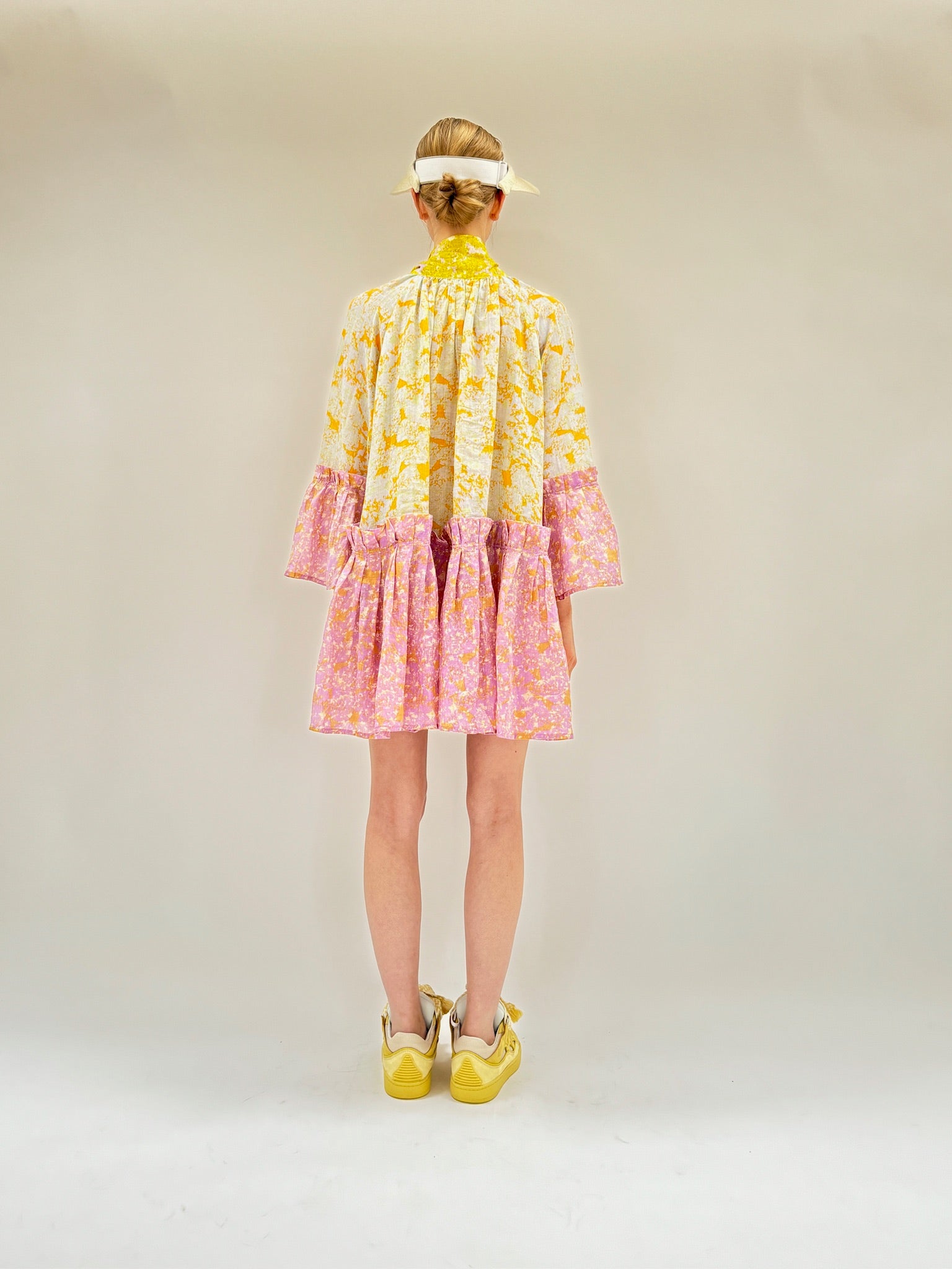 Each dress is made with unique prints created through hand-applied screen-printing techniques using natural dyes. No two dresses are alike, ensuring that each piece is as individual as the wearer. Embrace your uniqueness and express your style with the Angelica Mini dress — where fashion meets artistry in every stitch. If you like the Angelica Mini, try the Angelica Dress, which is a similar cut with a longer hem.