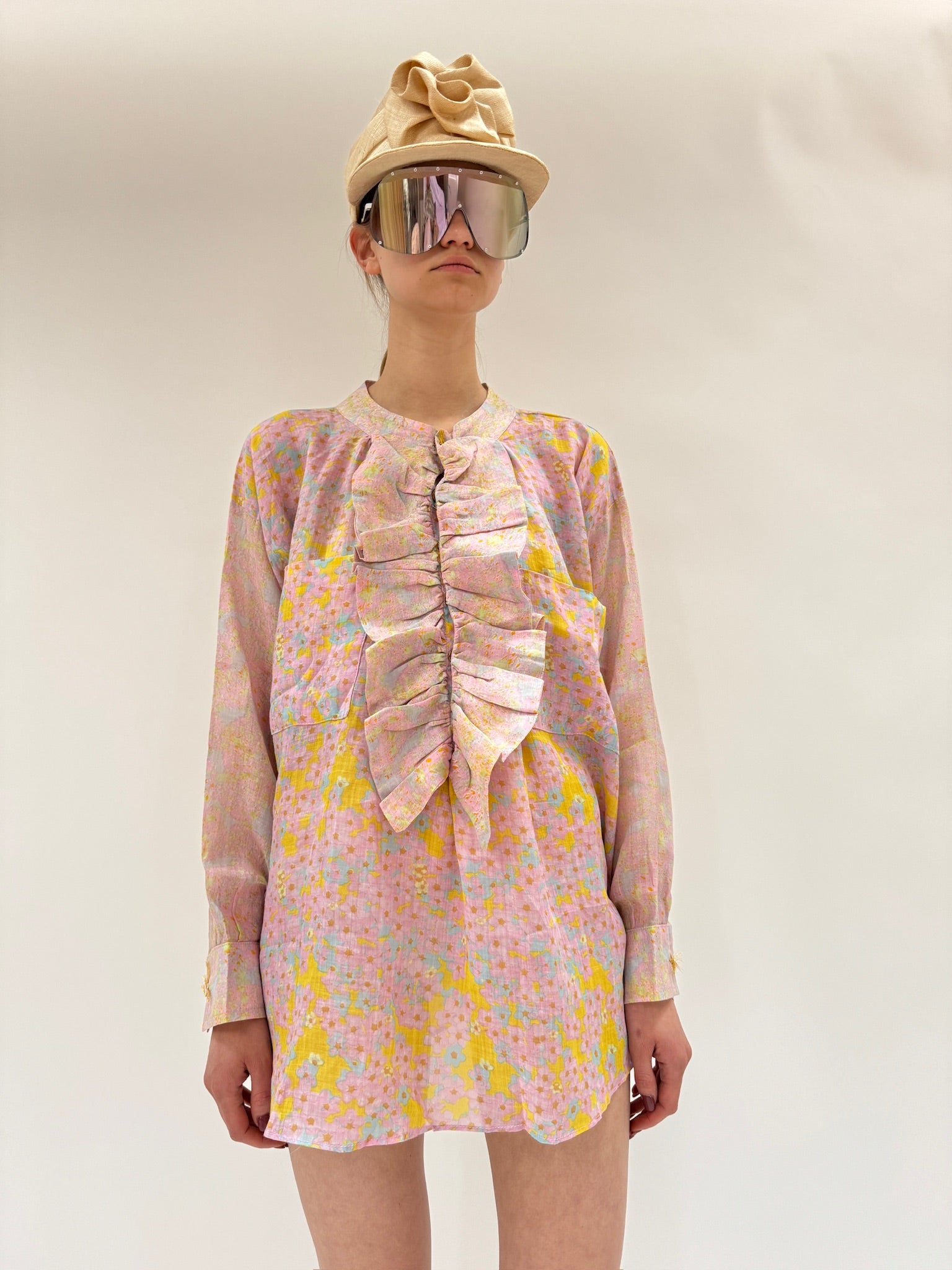 Each piece is meticulously handmade using natural dyes and original techniques. Embrace the uniqueness of your style as no two shirts are alike, ensuring that you don a truly one-of-a-kind garment. Revel in the delicate craftsmanship and the bespoke beauty of your wardrobe with our Frill Shirt.