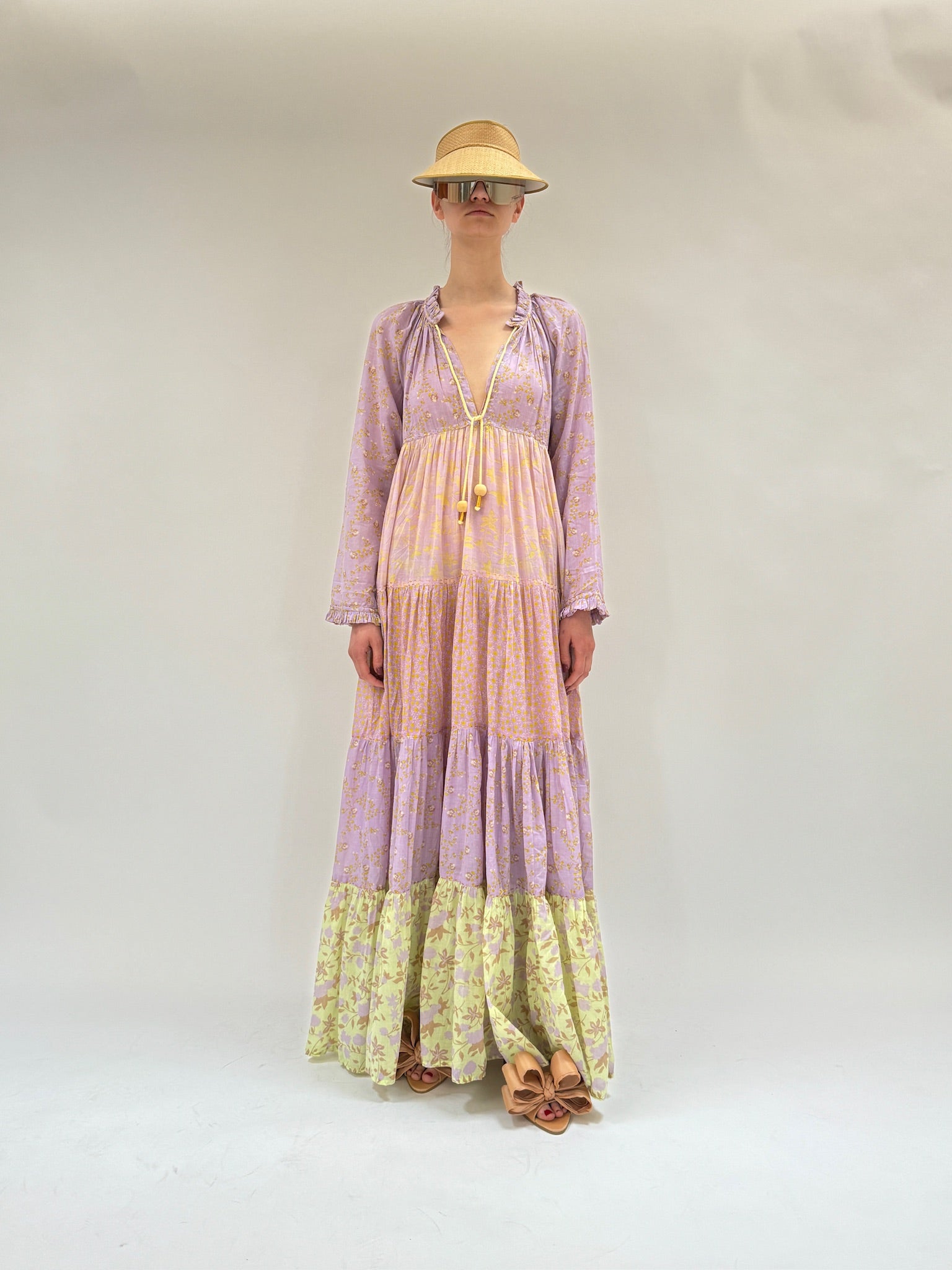 Our Maxi Hippydress is a forever dress. Hand-made and hand-printed in 100% cotton voile gives it a light and airy feel, perfect for embracing your free-spirited vibe. The Maxi Hippydress features hand stitching and hanging gold threads with a neck string and natural wood balls.