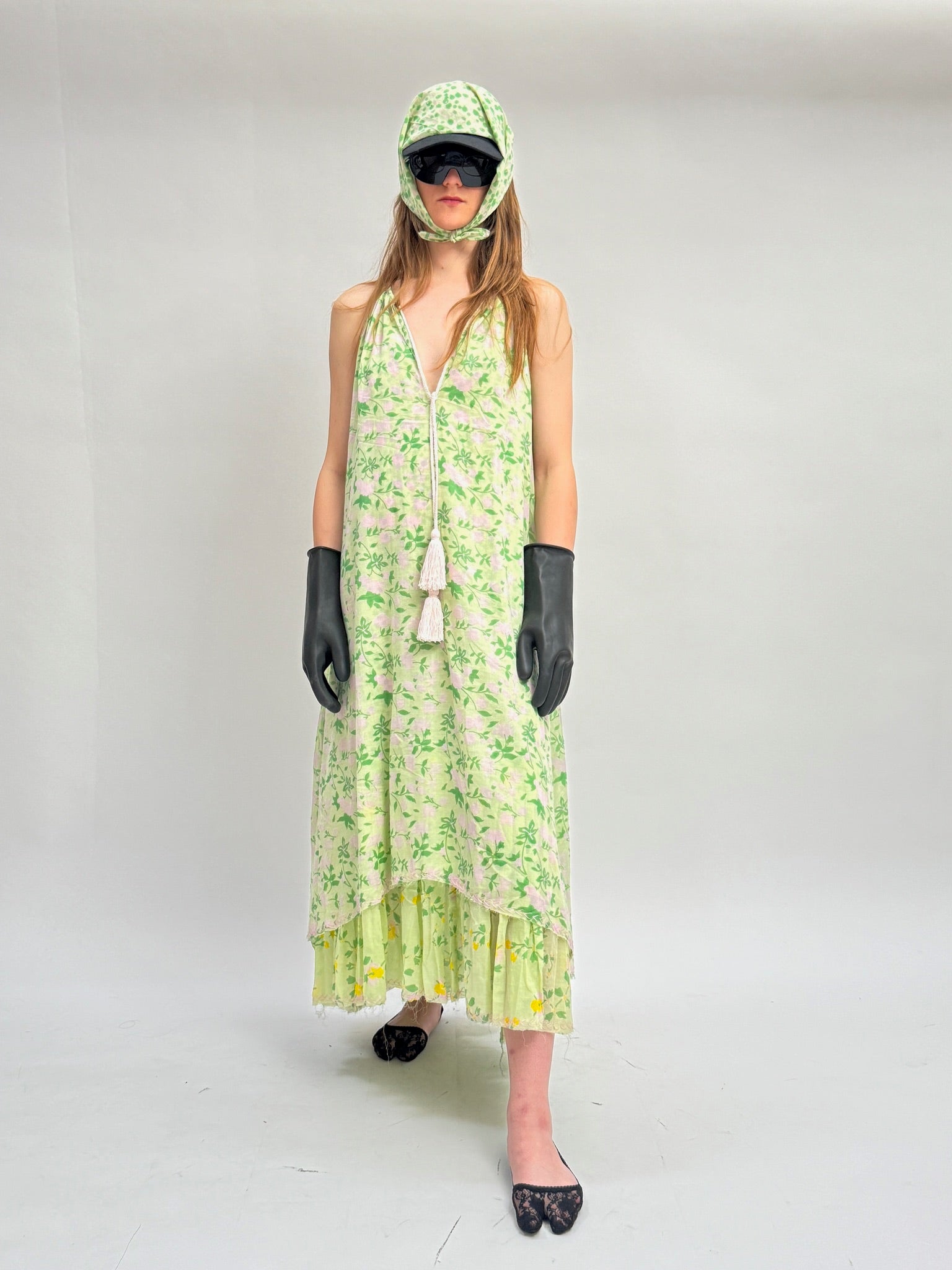 Robe longue Lollipop multi-imprimés avec plissé Volang + cordon gland gland + bordures cousues main.