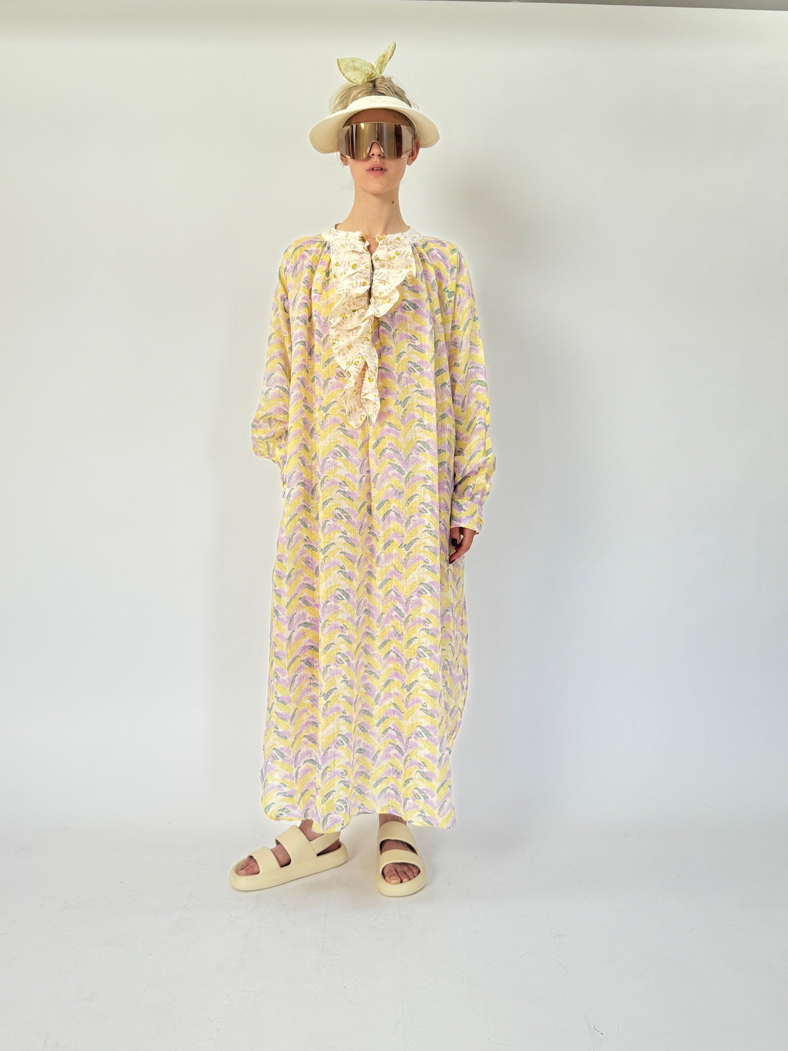 Robe à volants avec poches latérales et ceinture ample à pompons en corde de couleur Harvest.