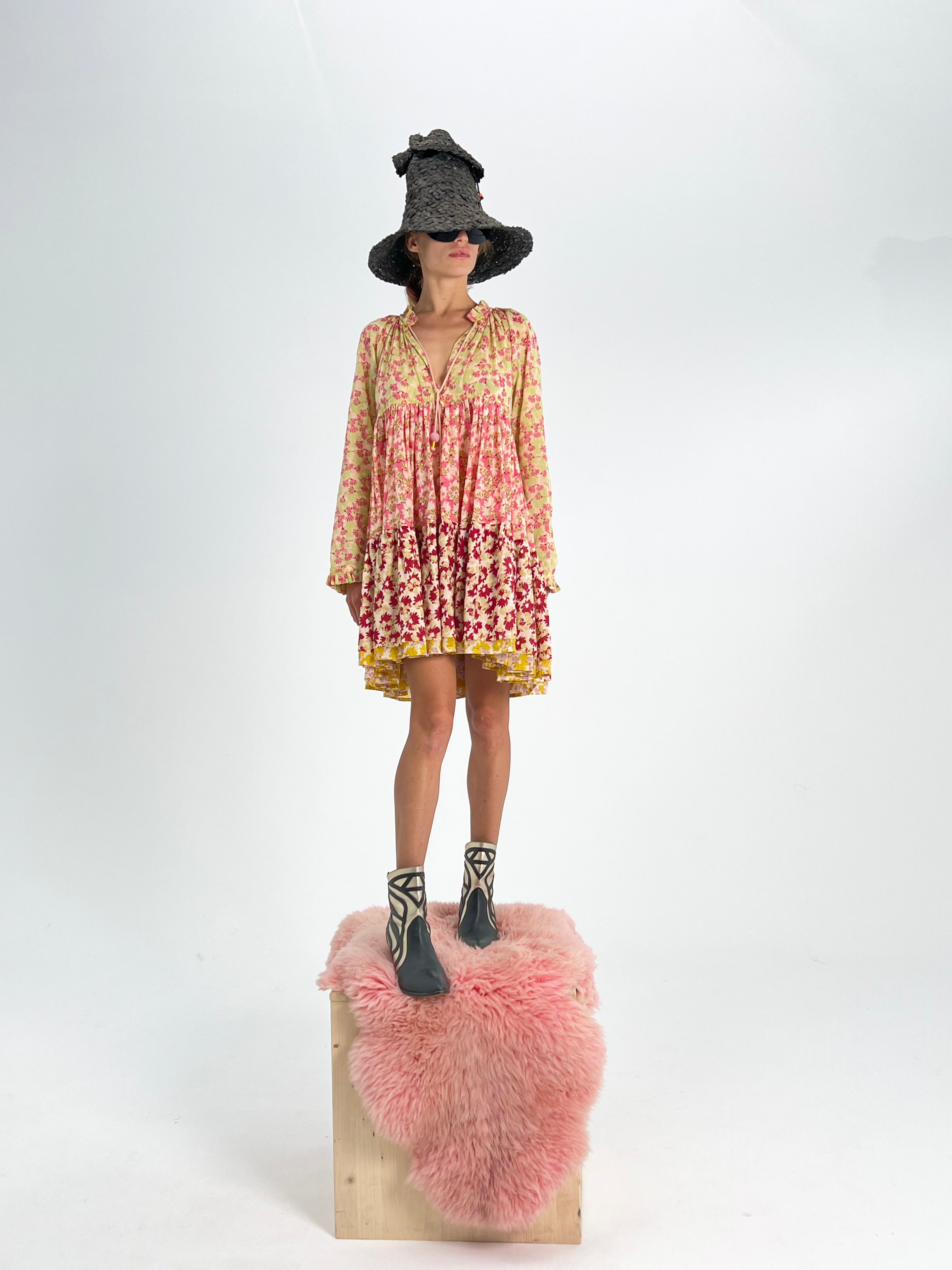 Multi Print Double Super Mini Avec Coutures Dorées + Fils de Suspension, Cordelette + Boules de Bois et 1 Volant