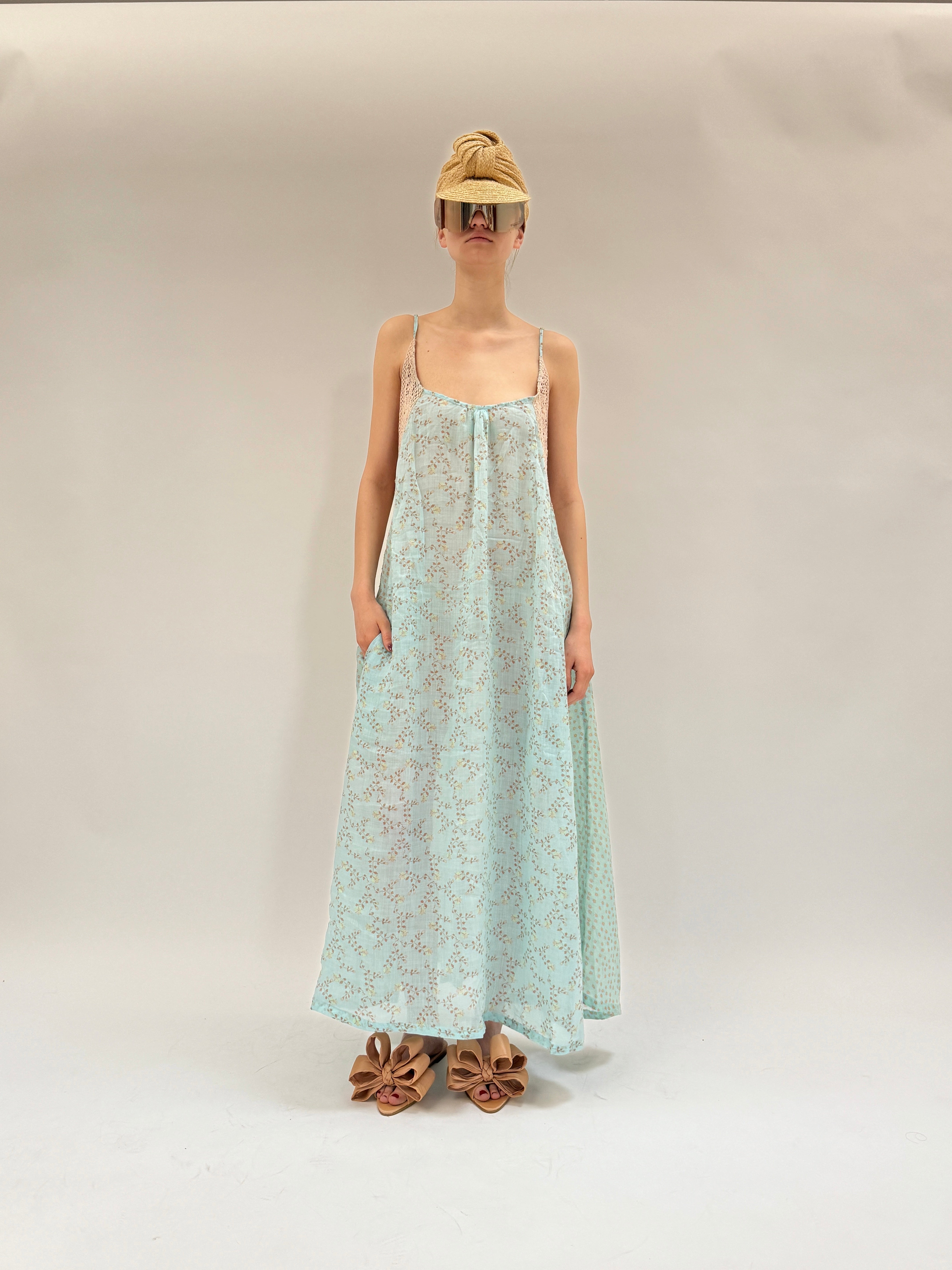 Each dress is made with unique prints created through hand-applied screen-printing techniques using natural dyes. No two pieces are alike, making each dress a one-of-a-kind masterpiece. Embrace the beauty of individuality and stand out in a crowd with our Multi Print Slip Lace Dress – where fashion meets artistry in every stitch.