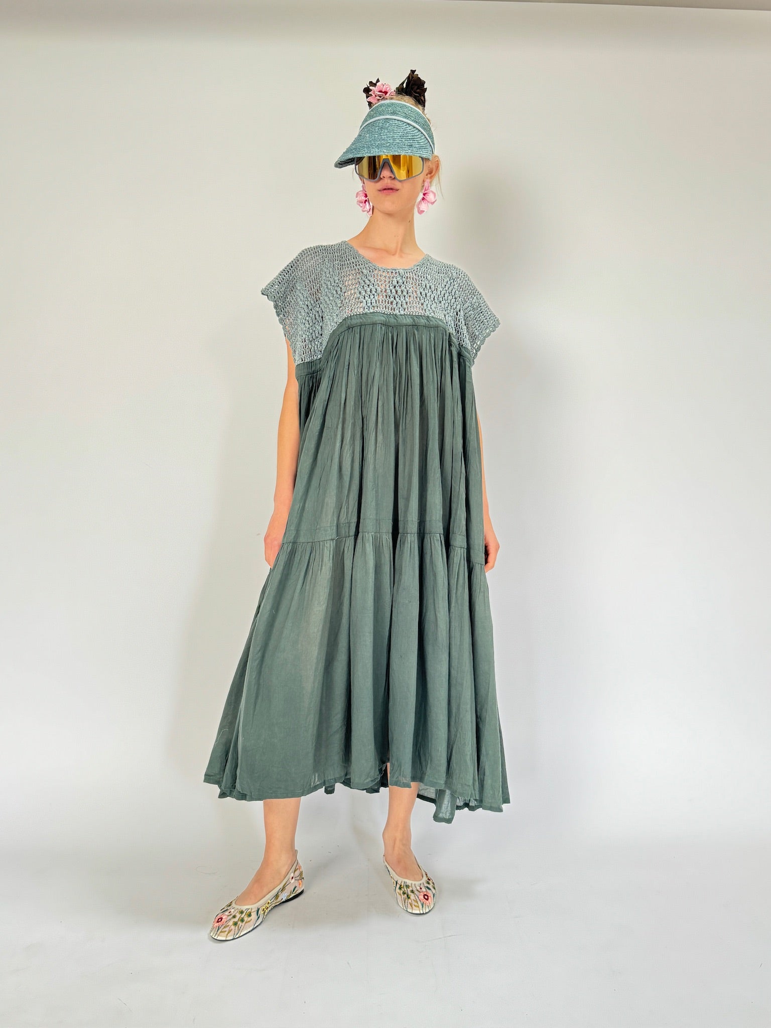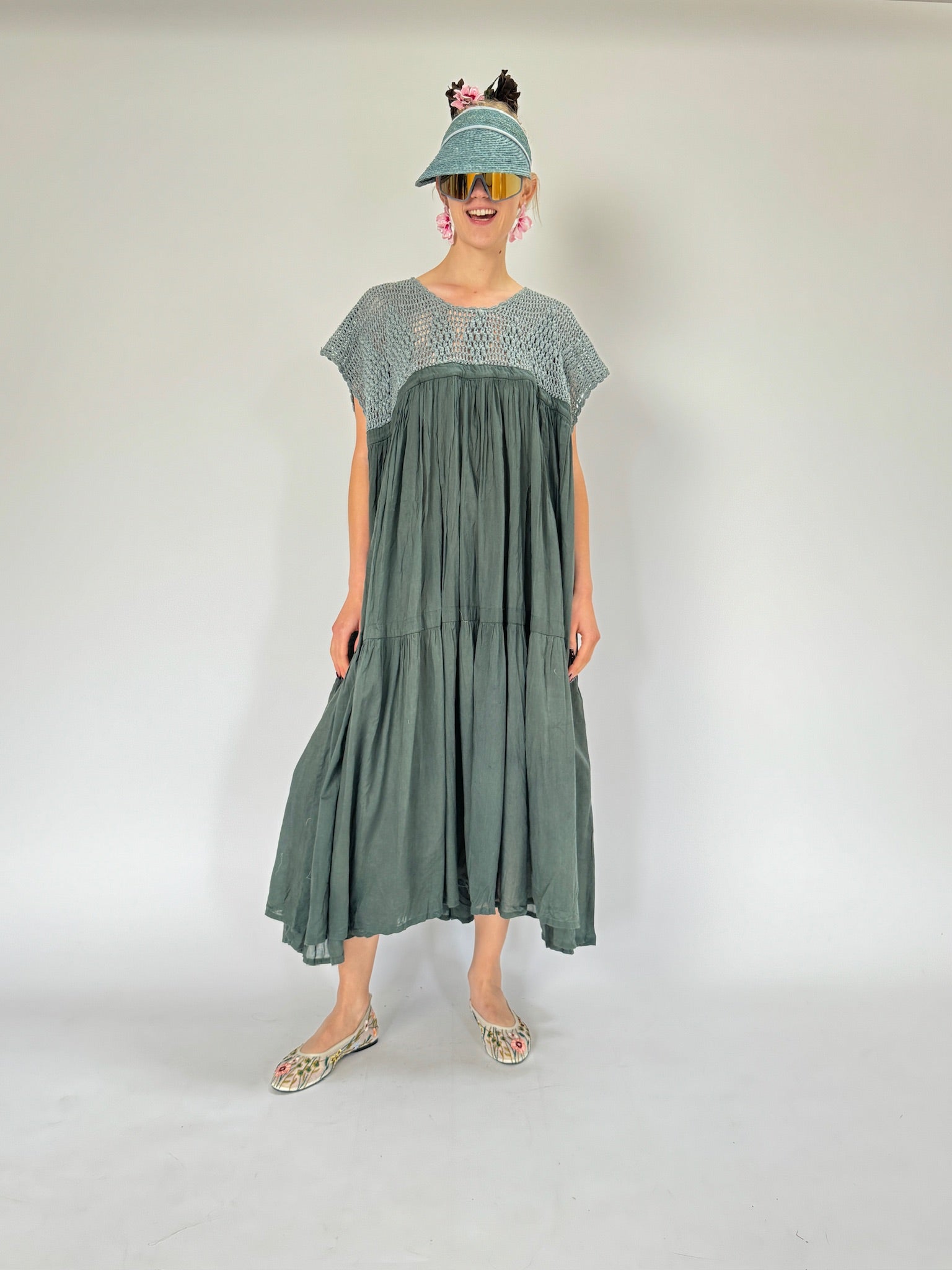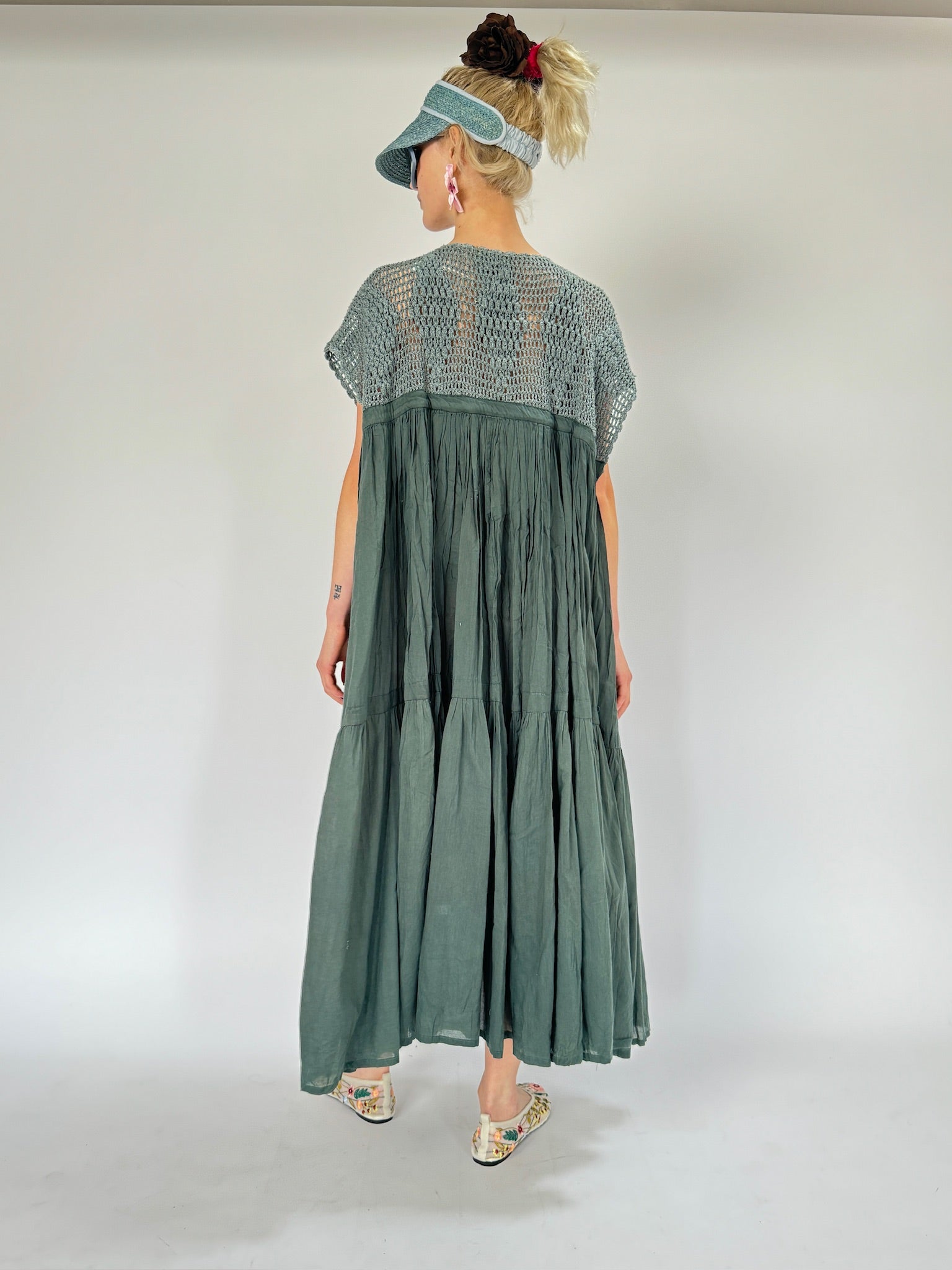 Chaque robe est réalisée avec des imprimés uniques créés grâce à des techniques de sérigraphie appliquées à la main à l'aide de colorants naturels. Il n'y a pas deux robes identiques, ce qui garantit que chaque pièce est aussi individuelle que celle qui la porte. Élevez votre garde-robe avec la robe Wind Dress avec crochet — où la mode rencontre l'art dans chaque point et le confort danse avec style.