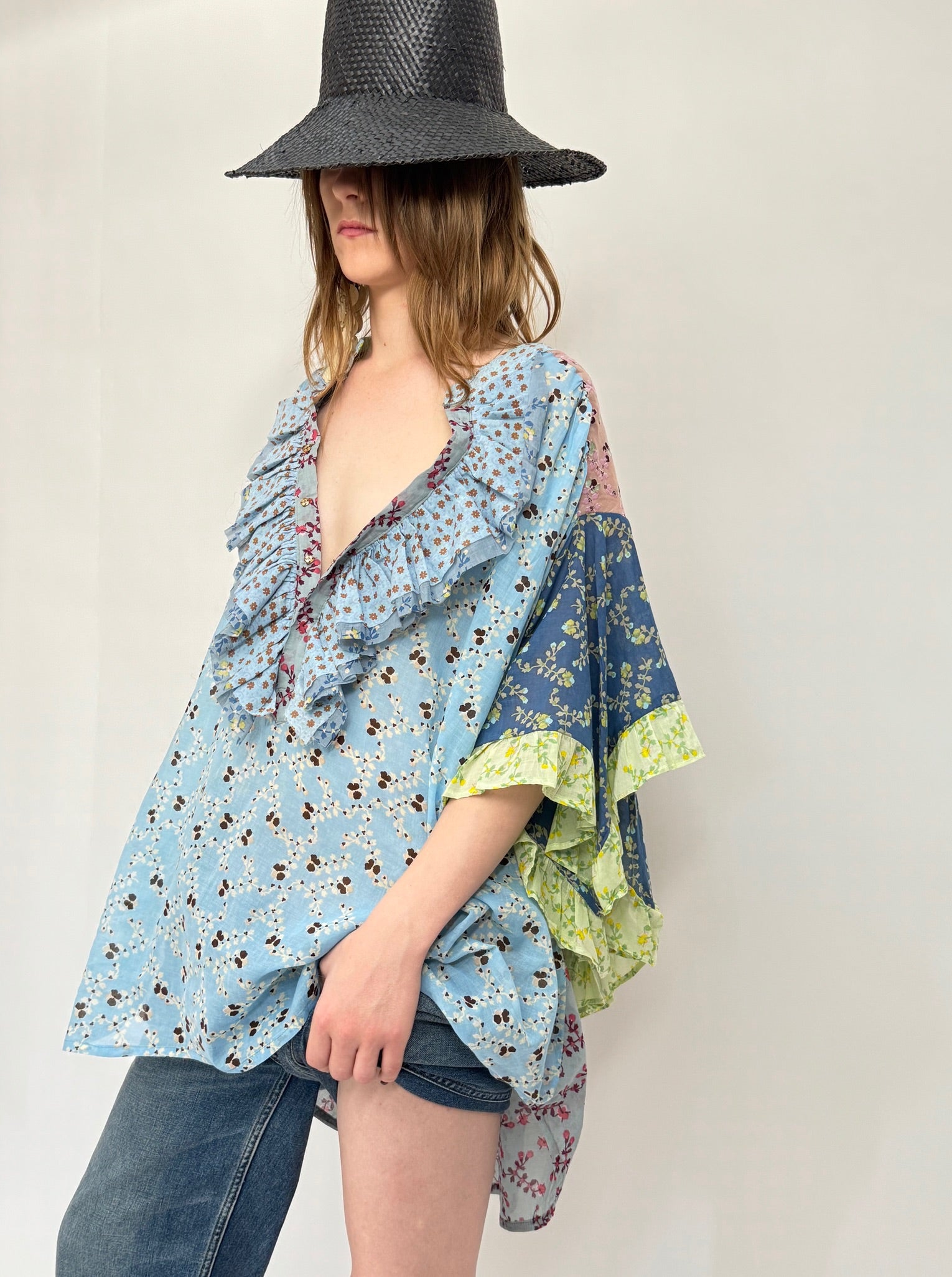 Each piece is meticulously handmade using natural dyes and original techniques. Embrace the uniqueness of your style as no two shirts are alike, ensuring that you don a truly one-of-a-kind garment. Revel in the delicate craftsmanship and the bespoke beauty of your wardrobe with our Frill Shirt.