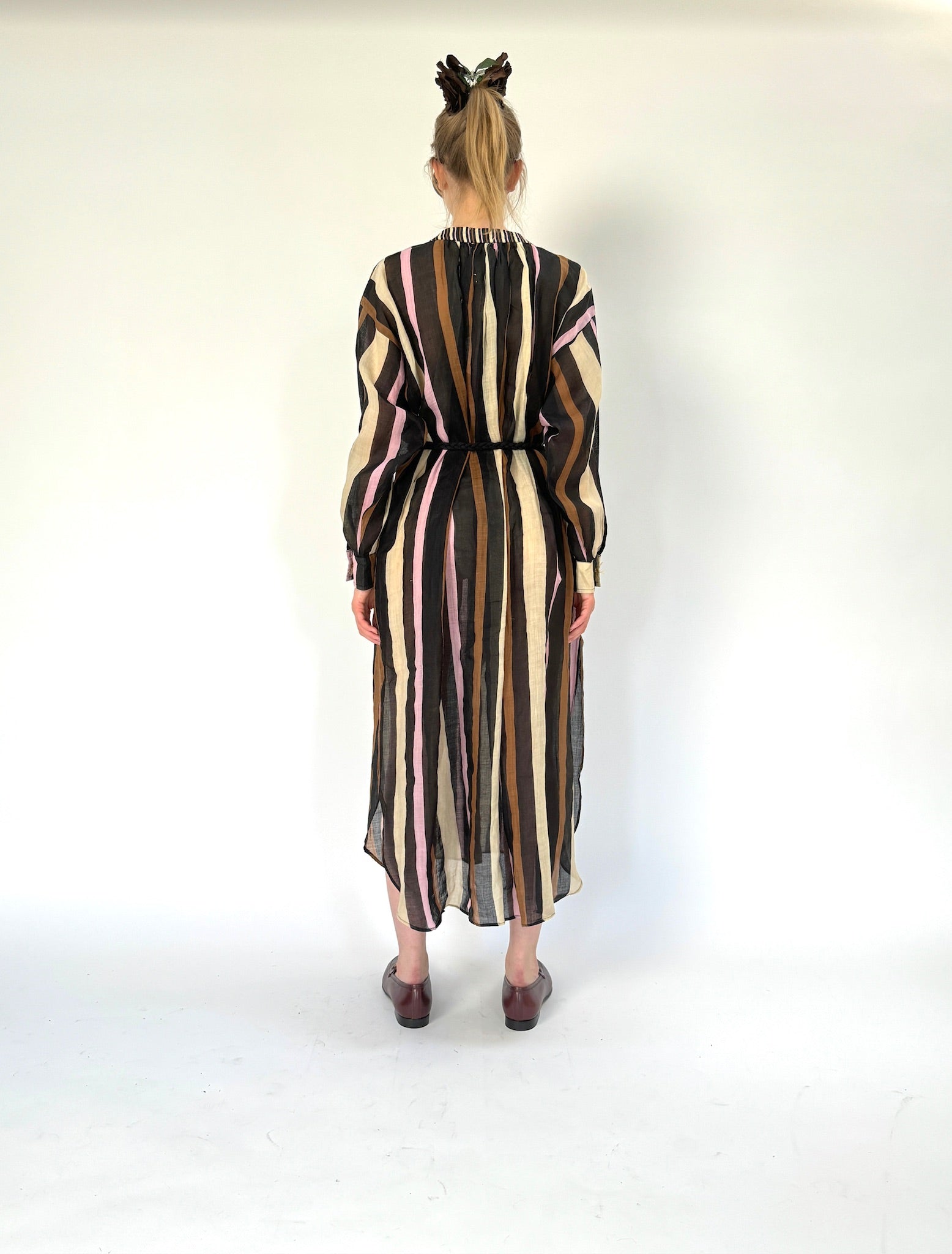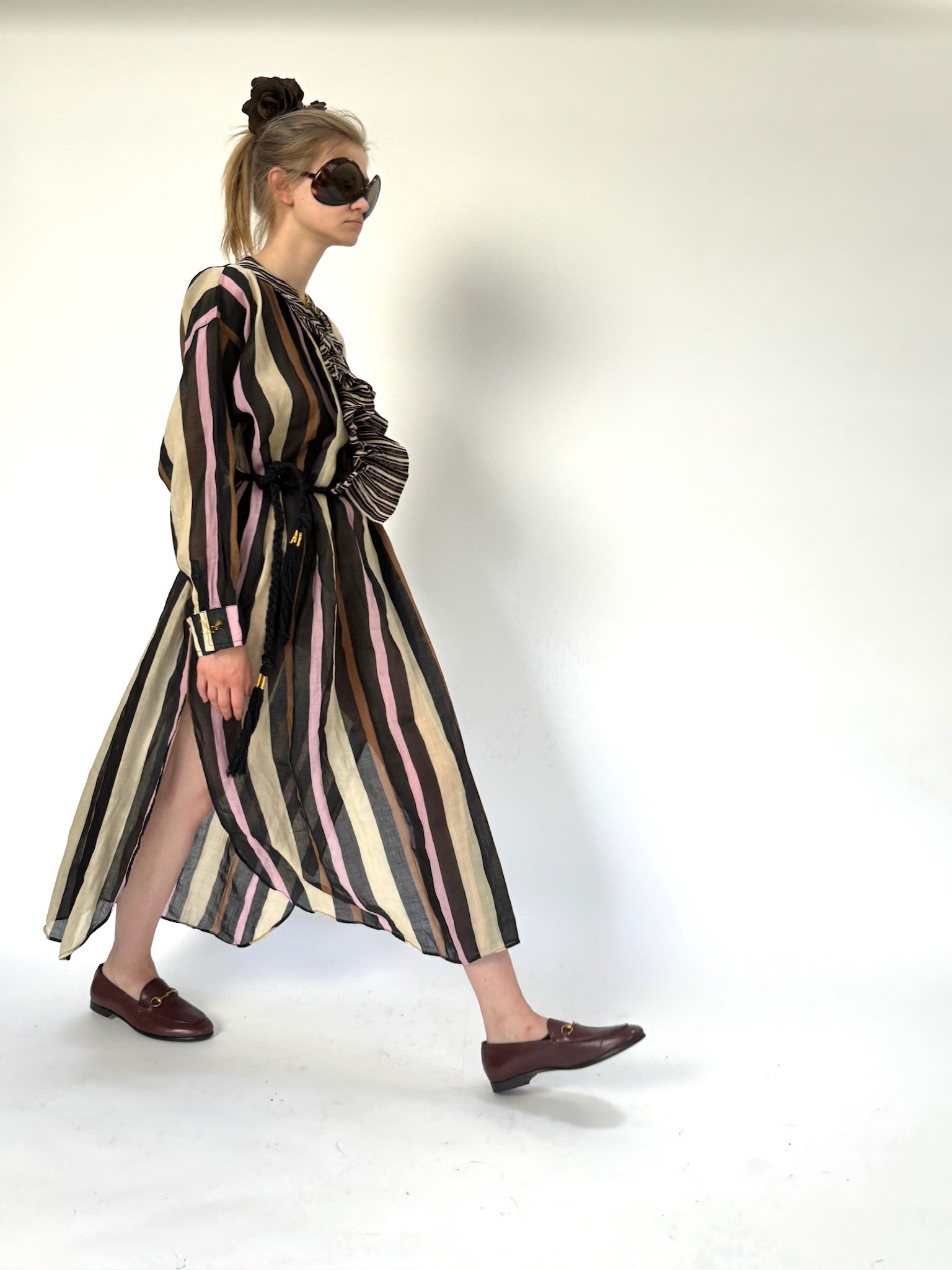 Robe à volants avec poches latérales et ceinture ample à pompons en corde de couleur Harvest.