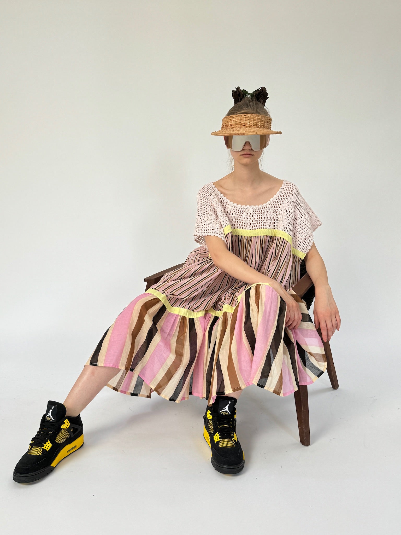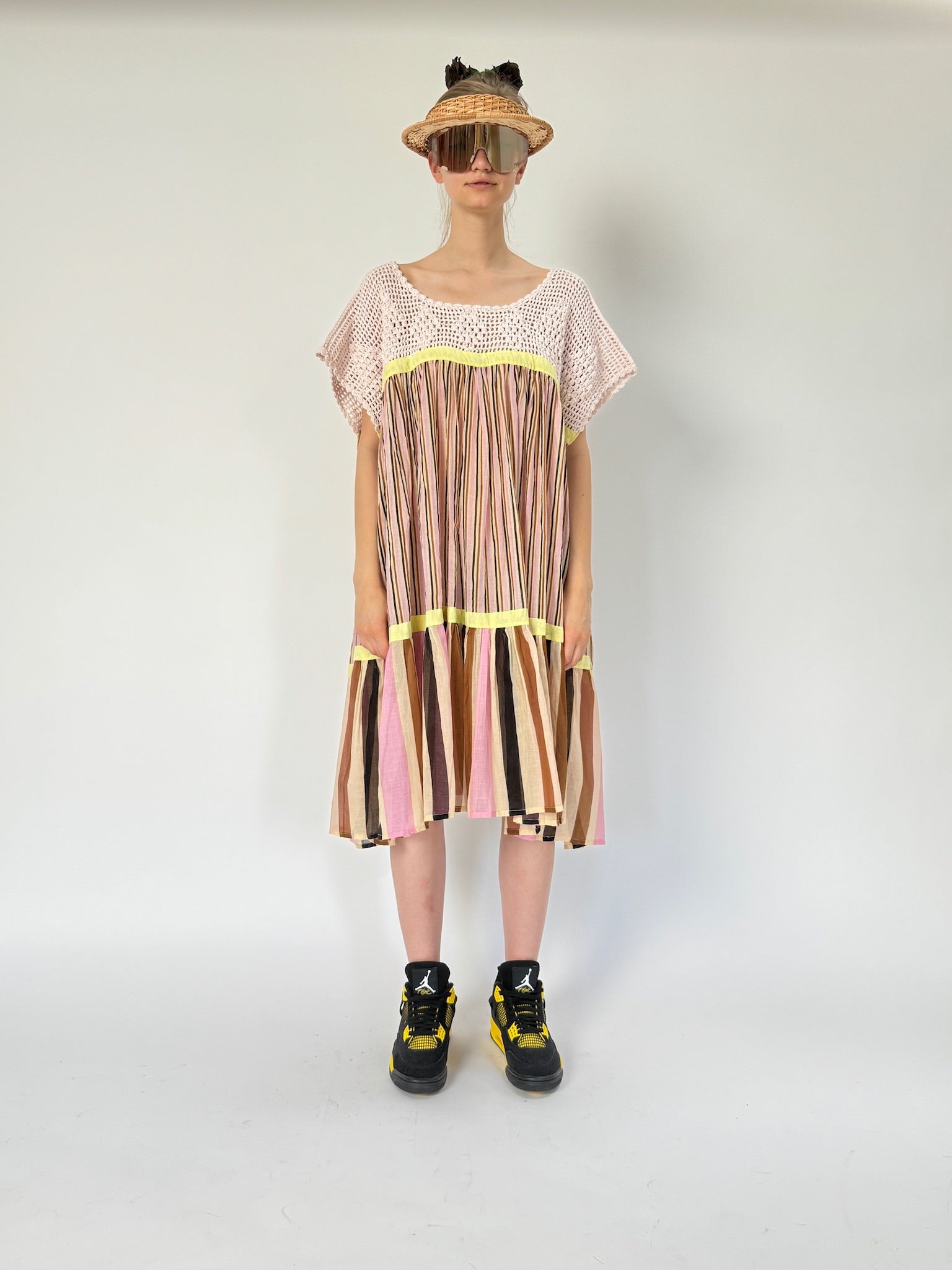 Each dress is made with unique prints created through hand-applied screen-printing techniques using natural dyes. No two dresses are alike, ensuring that each piece is as individual as the wearer. Elevate your wardrobe with the Wind Dress Short Crochet — where fashion meets artistry in every stitch and comfort dances with style.