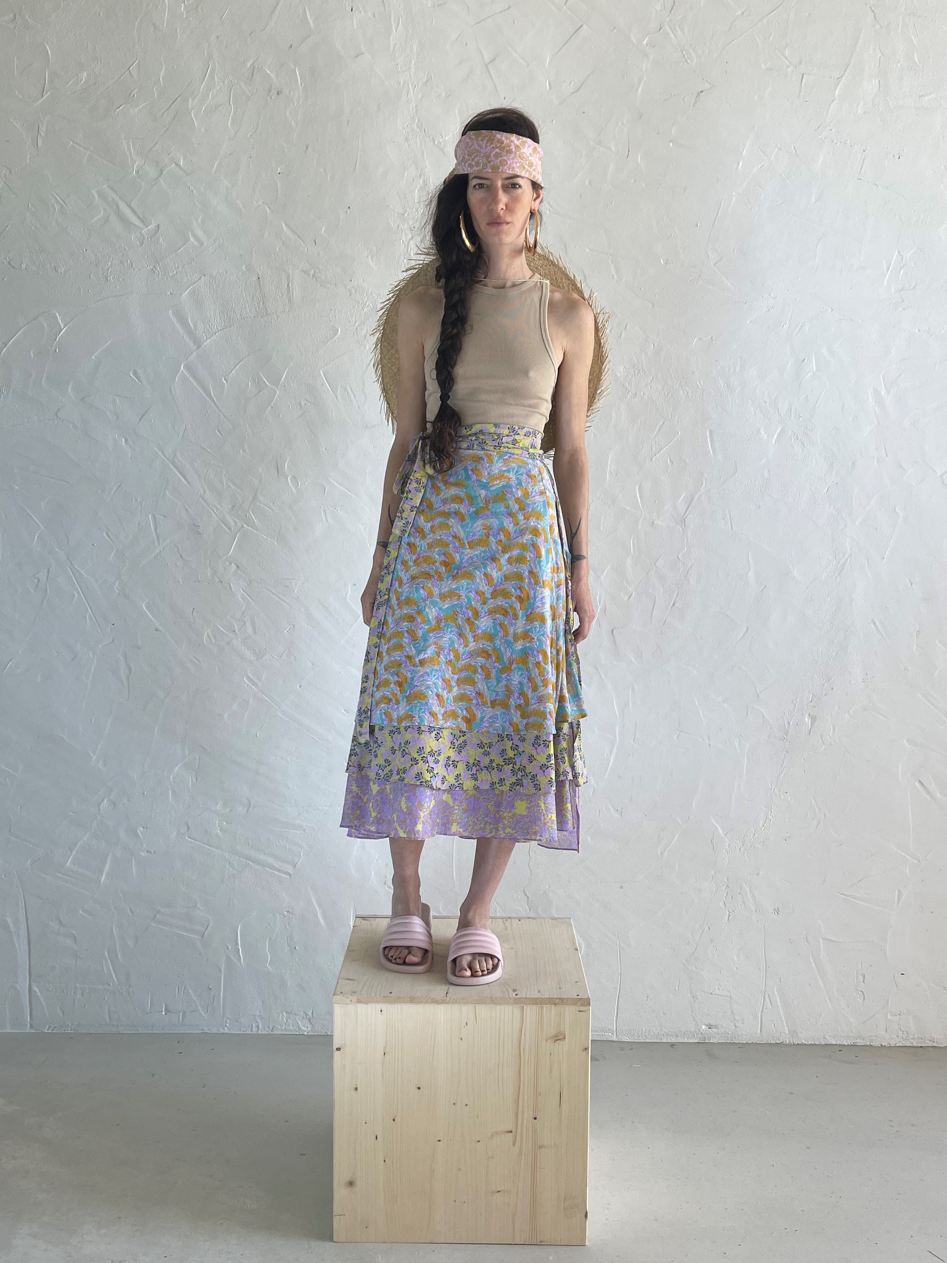 Jupe portefeuille multi-imprimée à deux panneaux avec ceinture et ceinture attachées
