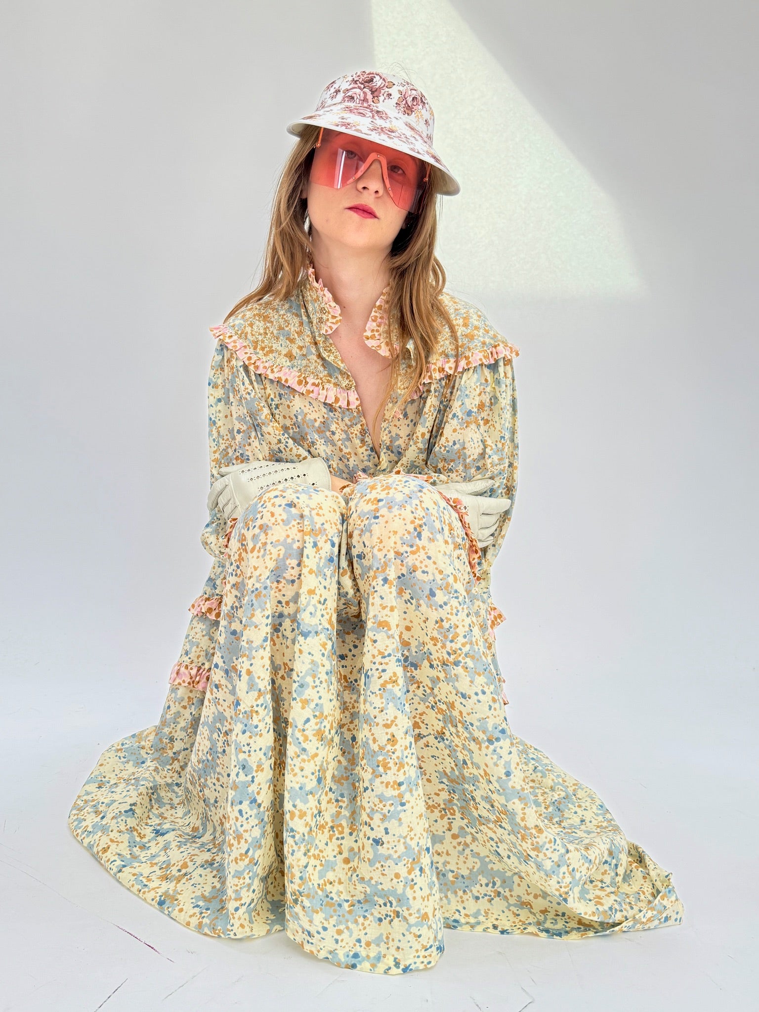 Each piece is made with unique prints created through hand-applied screen-printing techniques using natural dyes. No two are alike. Embrace the uniqueness of your style with a garment that is as exceptional as you are. Make a statement with the Multi Print Priest Mini — where fashion meets artistry in every stitch.