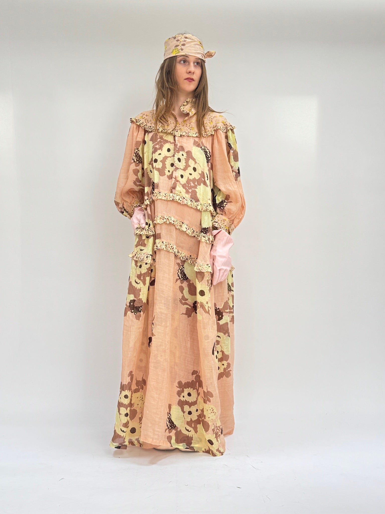 Each piece is made with unique prints created through hand-applied screen-printing techniques using natural dyes. No two are alike. Embrace the uniqueness of your style with a garment that is as exceptional as you are. Make a statement with the Multi Print Priest Mini — where fashion meets artistry in every stitch.