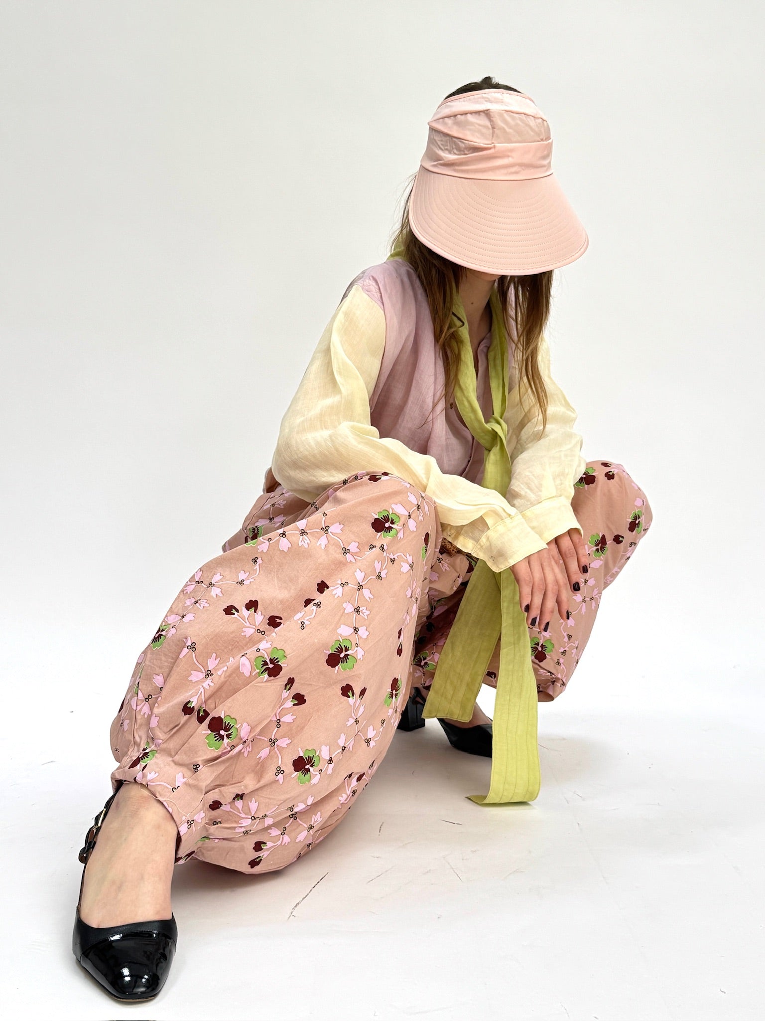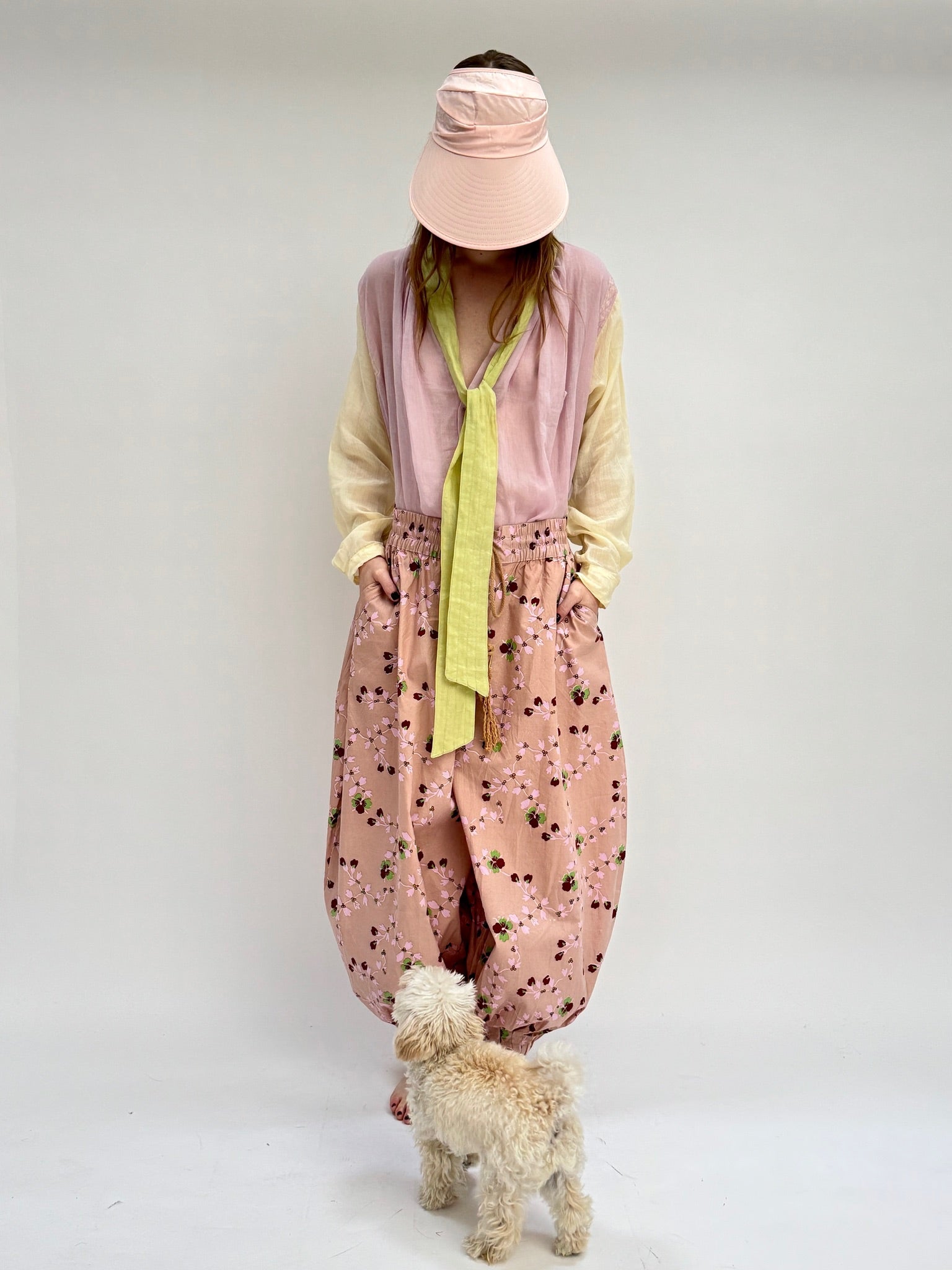 The Balloon Jogging pants feature side pockets and an elastic and cord tassel belt at the waist, adorned with gold thread that not only adds a touch of sophistication but also ensures a customized fit.