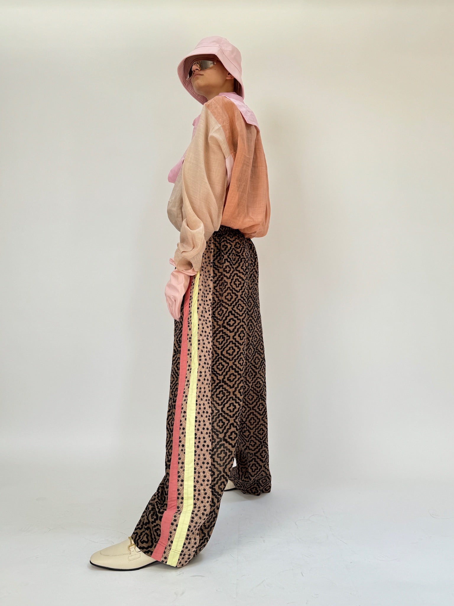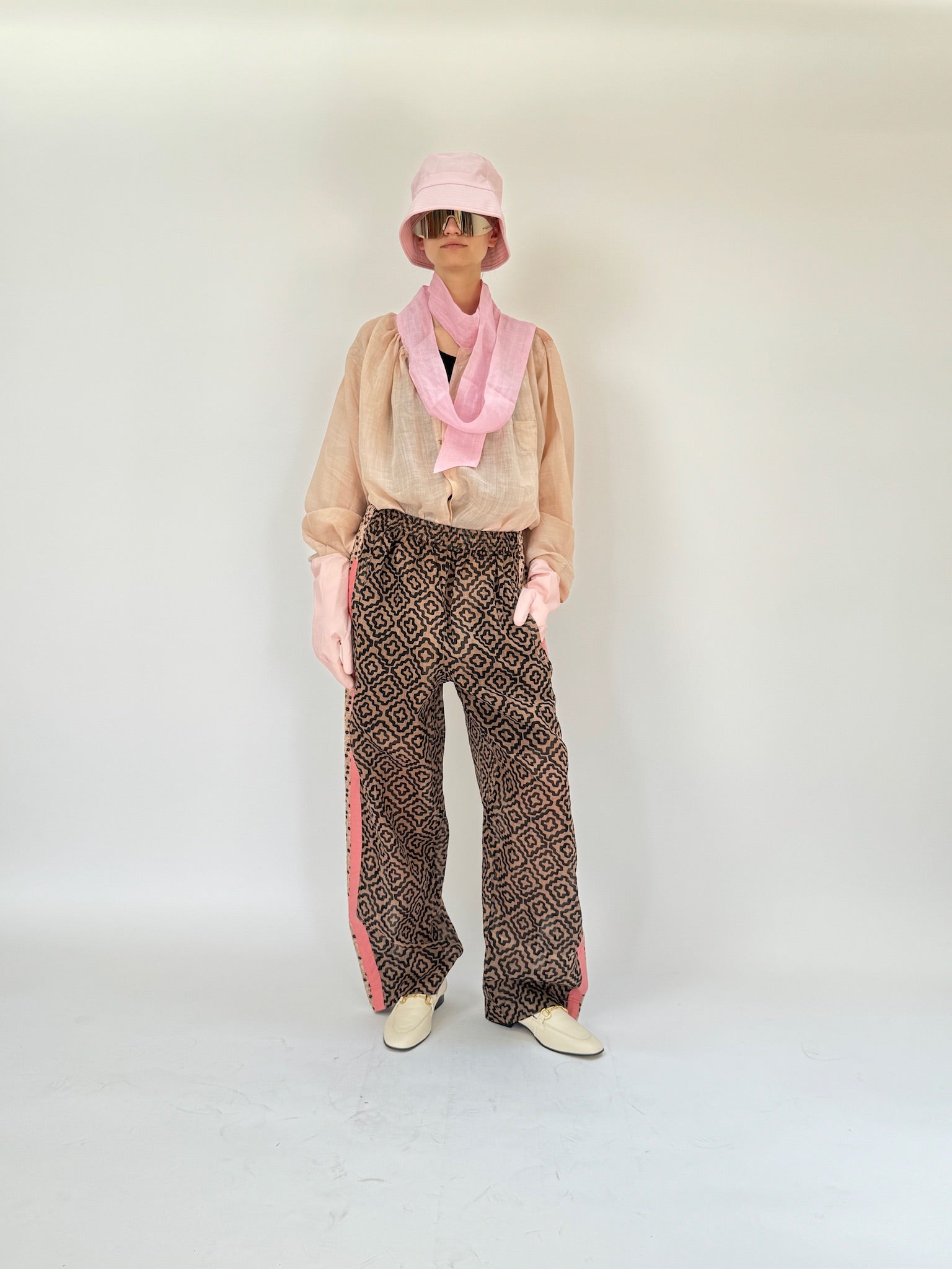 The unique handmade and hand-printed techniques employed in the creation of each blouse ensure that no two pieces are alike, making yours truly one-of-a-kind. Elevate your style with the Bow Blouse, a versatile and distinctive addition to your collection. Embrace the artistry of handmade fashion and revel in the exclusivity of a garment that reflects your individuality.