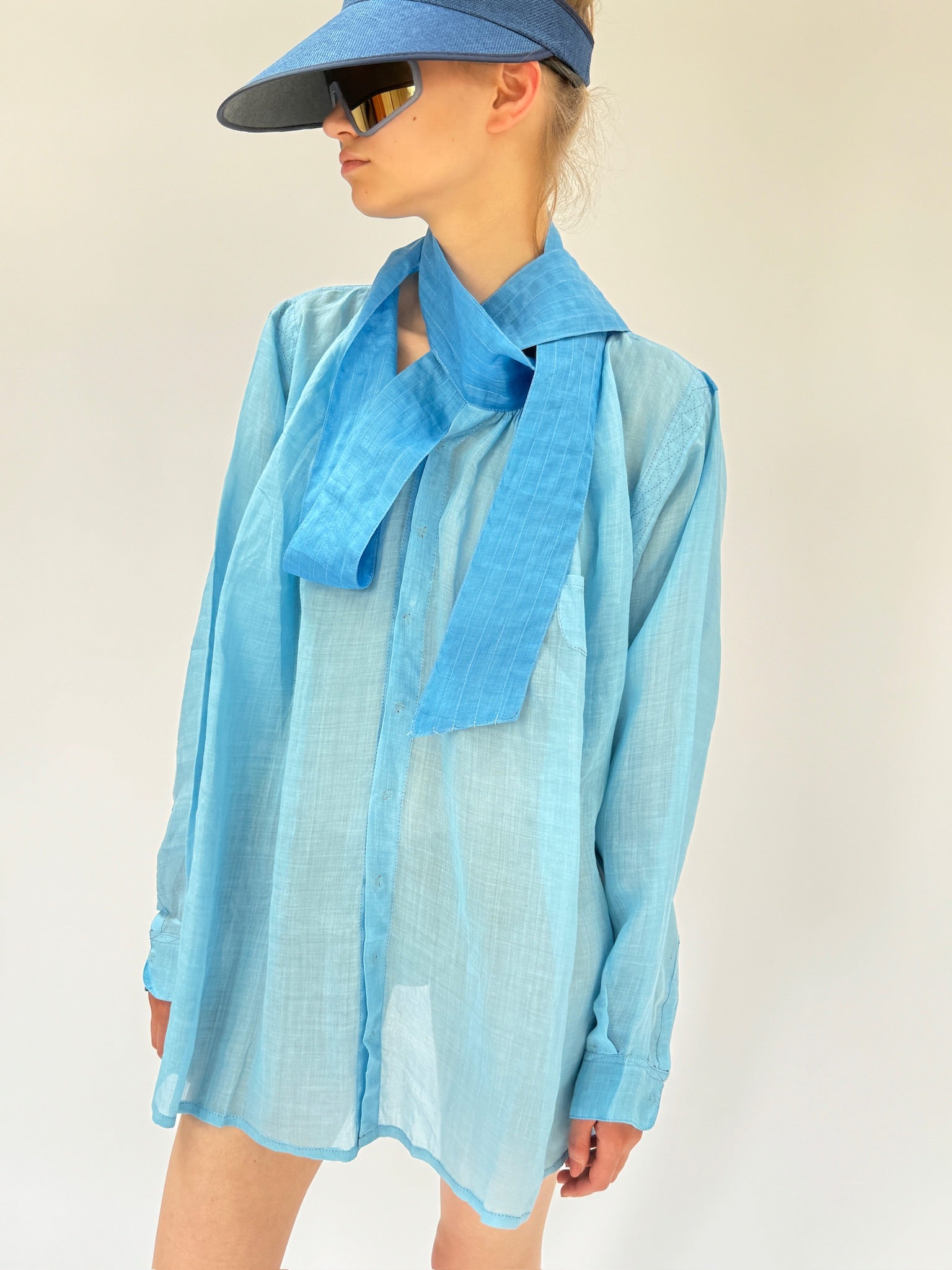 The unique handmade and hand-printed techniques employed in the creation of each blouse ensure that no two pieces are alike, making yours truly one-of-a-kind. Elevate your style with the Bow Blouse, a versatile and distinctive addition to your collection. Embrace the artistry of handmade fashion and revel in the exclusivity of a garment that reflects your individuality.