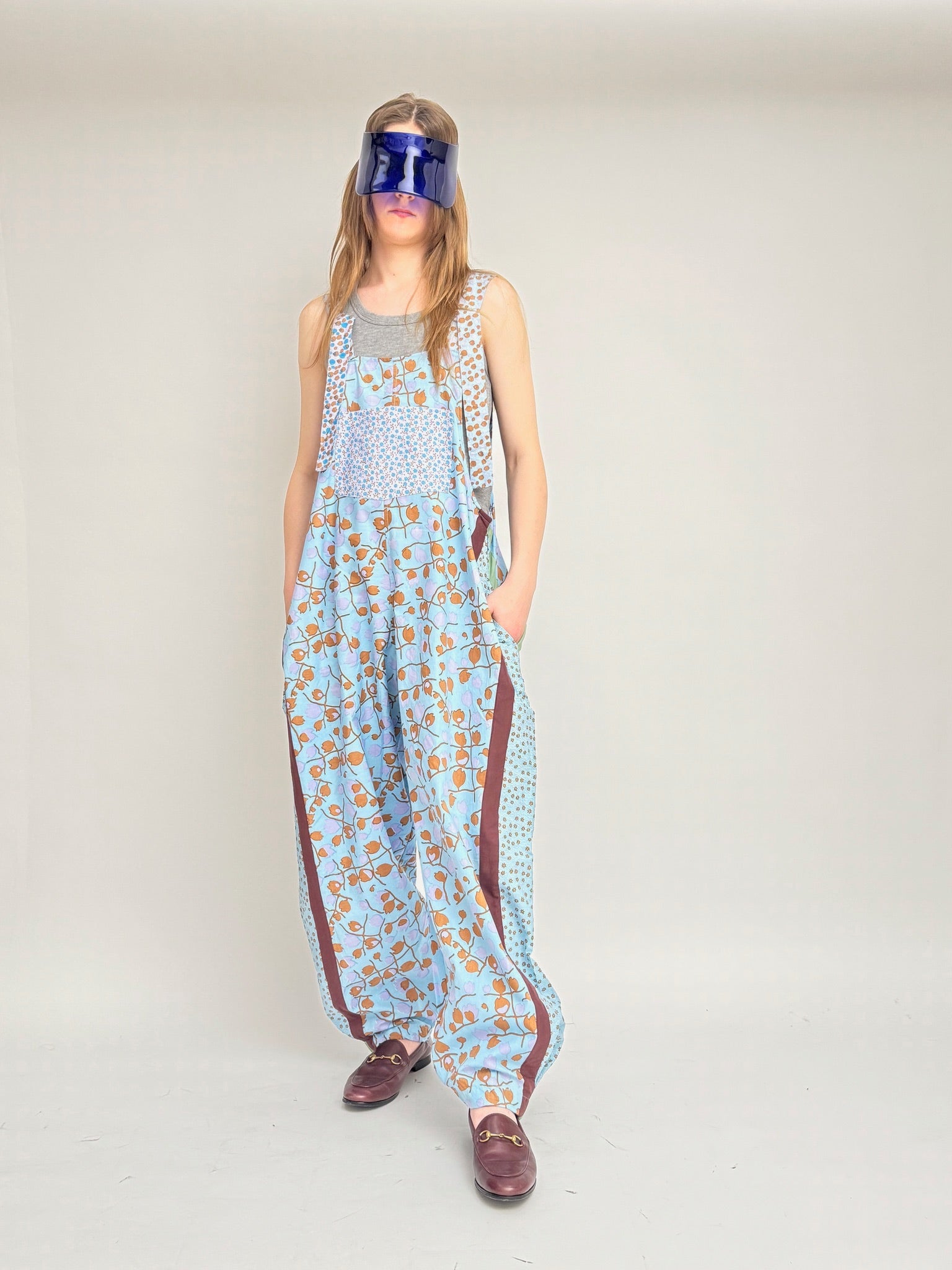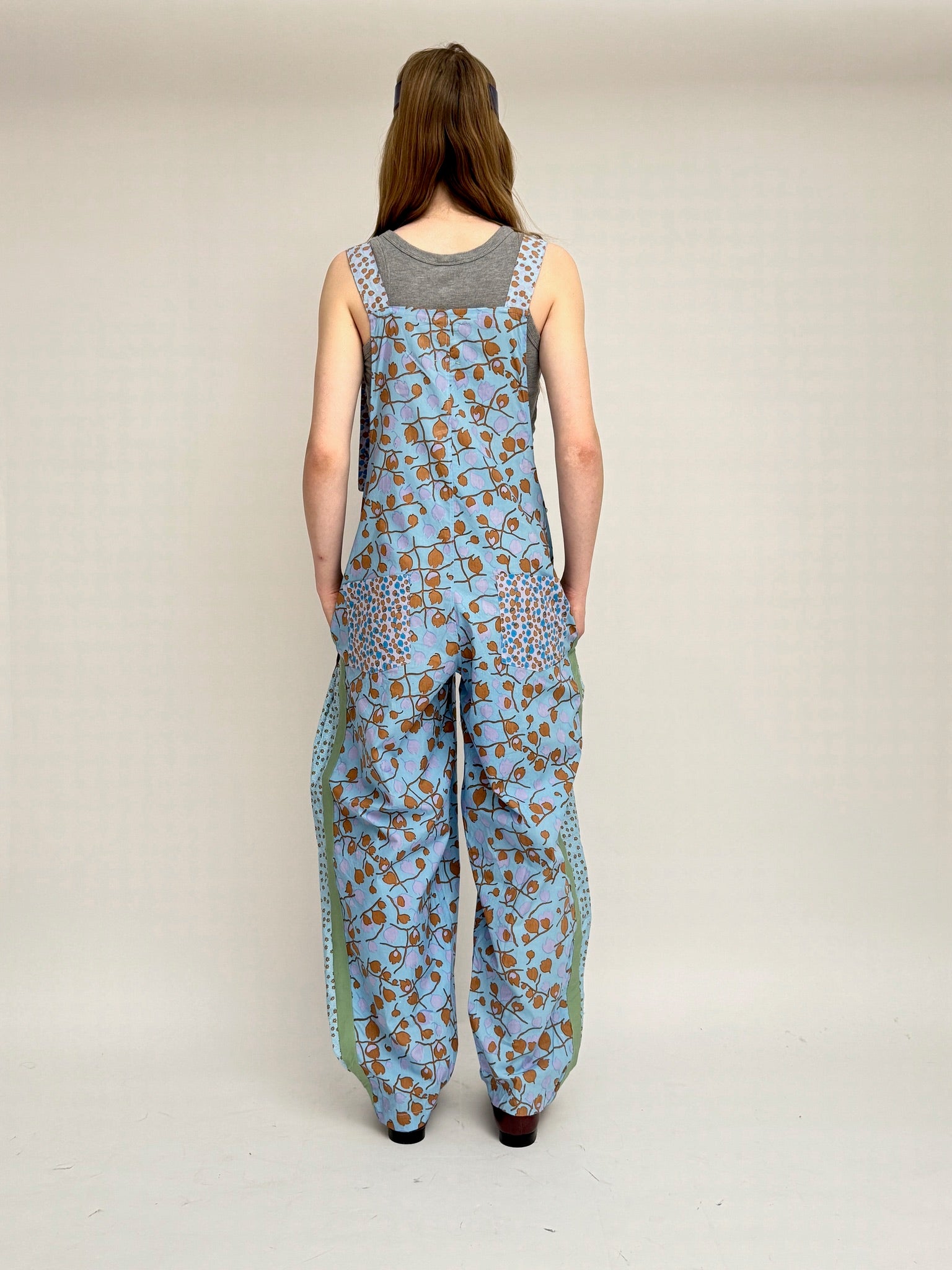 These overalls are handmade and hand-printed, utilizing original techniques. Each piece is unique, ensuring that no two are alike. Embrace the individuality of your fashion choices with our Dungaree Overalls, where every stitch and print tells a story of authenticity and craftsmanship. Elevate your wardrobe with this one-of-a-kind piece that effortlessly combines comfort, style, and artistry.
