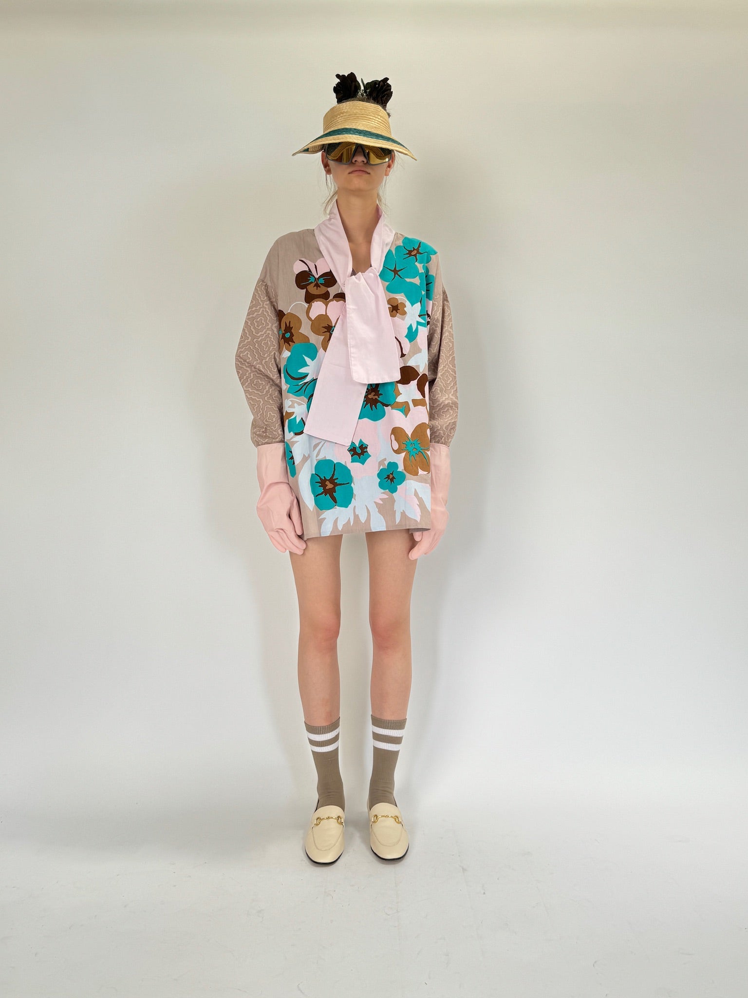 The unique handmade and hand-printed techniques employed in the creation of each blouse ensure that no two pieces are alike, making each piece a wearable work of art. Elevate your style with the New Bow Blouse, a versatile and distinctive addition to your collection. Embrace the artistry of fashion and revel in the exclusivity of a garment that reflects your individuality.